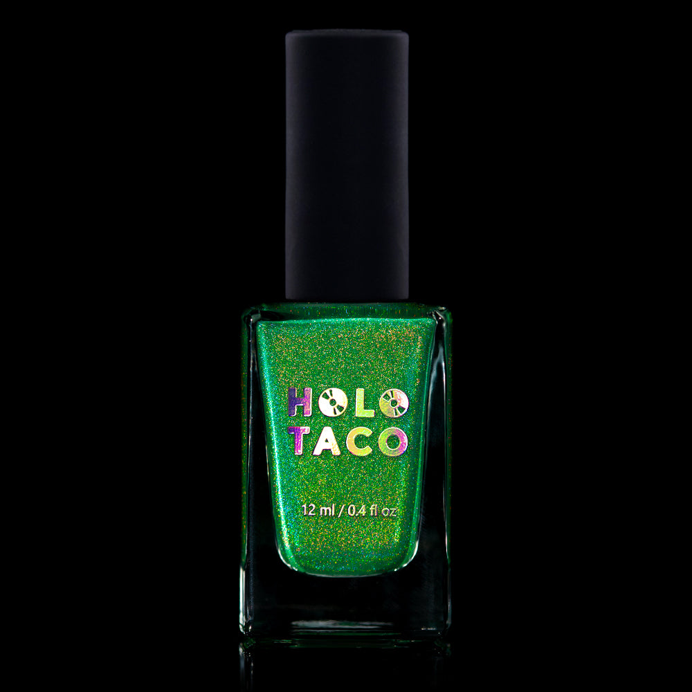 - Note: Holographic nail polish shows best under direct sunlight, halogen bulbs, or just your phone camera flash! Swatch photos as pictured have one coat of Glossy Taco for optimal smoothness and shine. Super-pigmented shades may cause staining depending on the porousness of the nail and the use of a protective base coat.