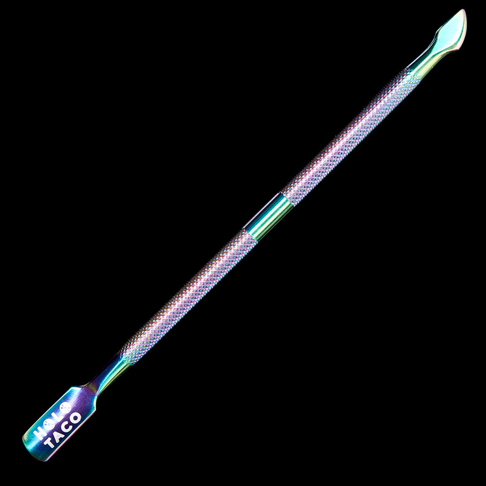Be ready for the job with this handy nail tool kit! Includes six high-quality nail tools in a rainbow chrome finish so you can prep in style. Keep your tools in place with a custom Holo Taco zipper pouch so sleek people will be asking you where you got that bag!