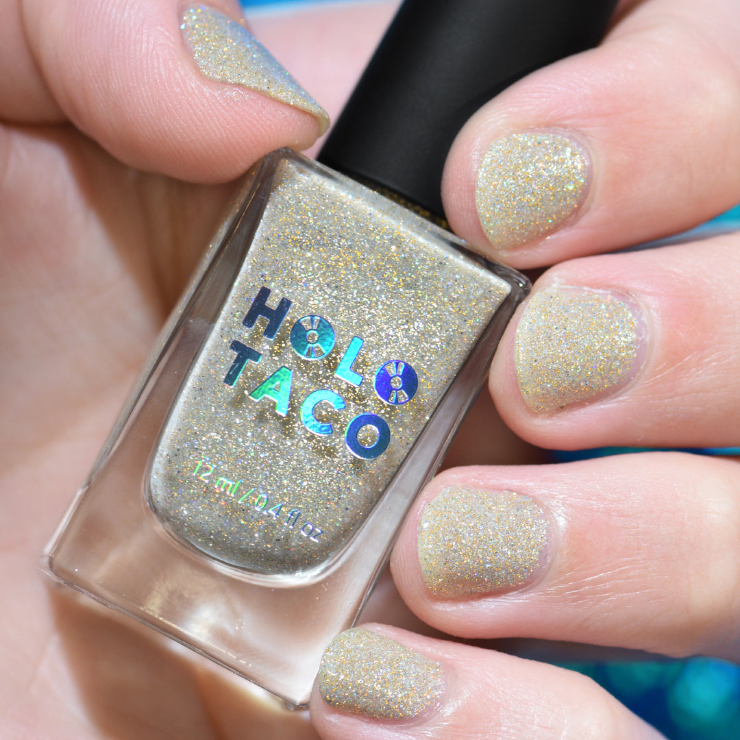 Pro glossy tip: Because this polish is packed with lots of glitter, we recommend applying two coats of Glossy Taco to achieve that super smooth glossy finish. Make sure to let your first coat of top coat dry and “sink into” the glitter layer before adding the second final coat of top coat.