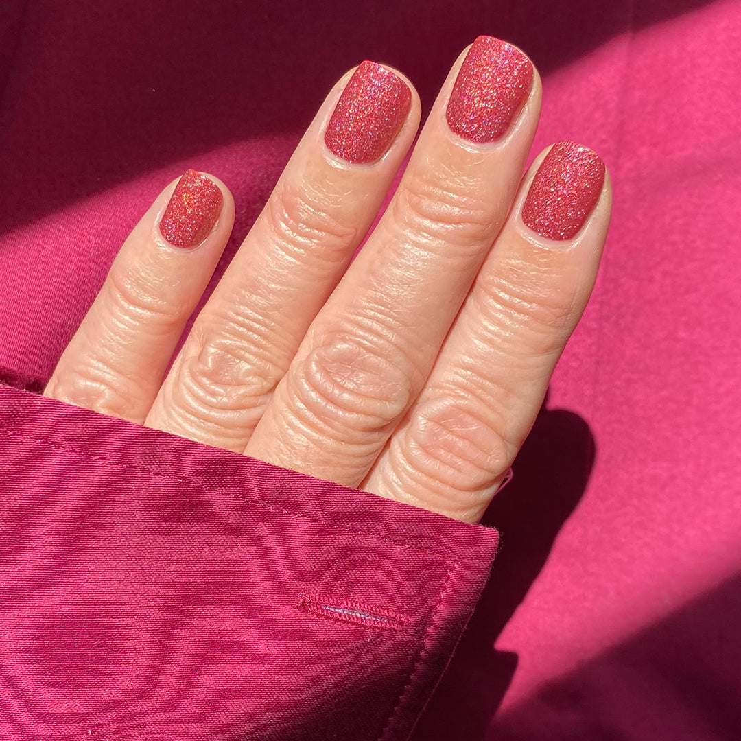 - Note: Holographic nail polish shows best under direct sunlight, halogen bulbs, or just your phone camera flash!