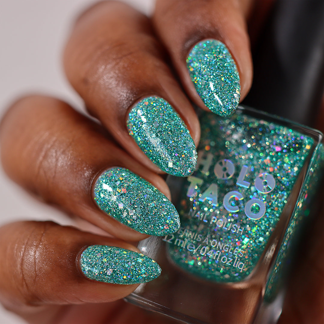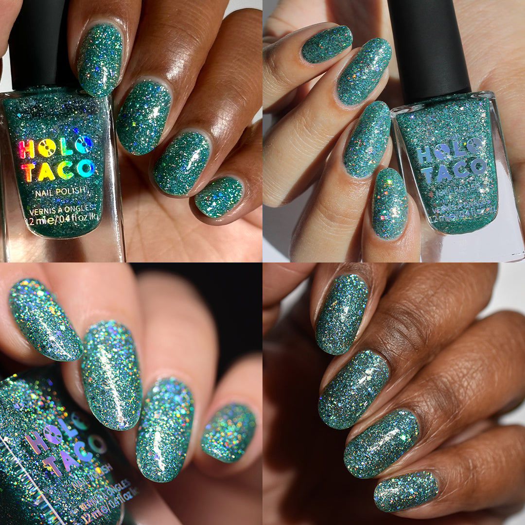 - Note: Holographic nail polish shows best under direct sunlight, halogen bulbs, or just your phone camera flash! Swatch photos as pictured have one coat of Glossy Taco for optimal smoothness and shine. Super-pigmented shades may cause staining depending on the porousness of the nail and the use of a protective base coat.