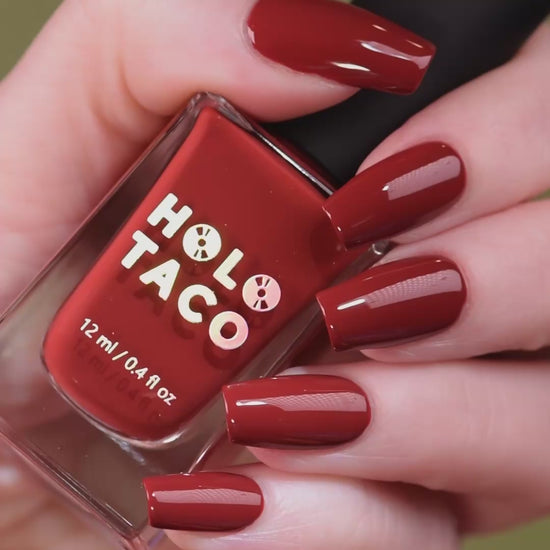 Such a unique and perfect shade—the name couldn’t be more fitting! It’s even a little more orange than red. Super pigmented and lasted a full week, just like all Holo Taco polishes, of course.