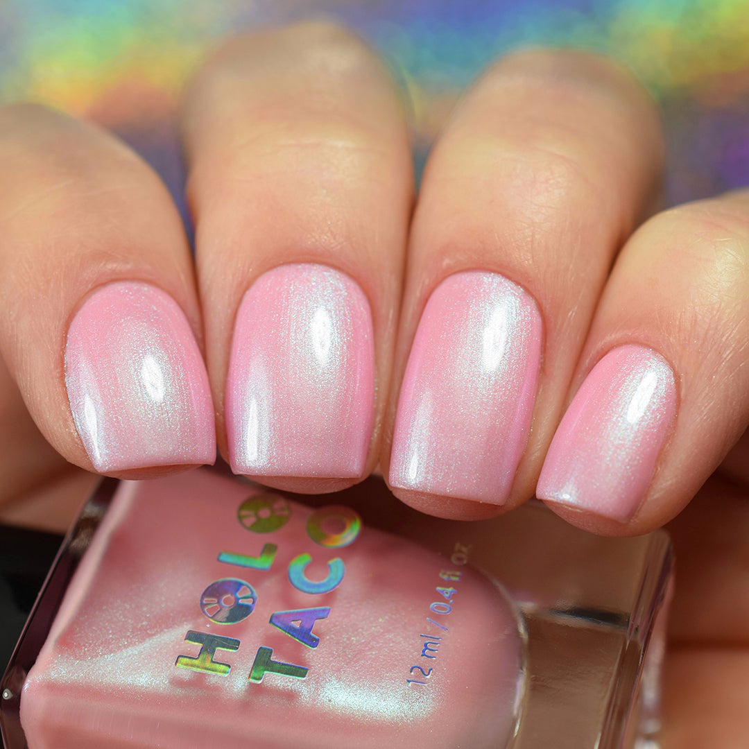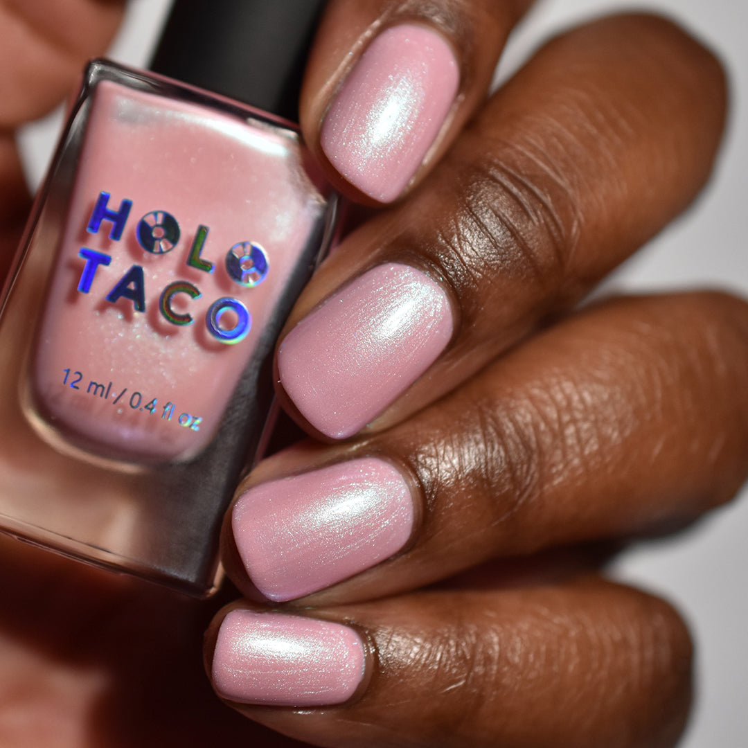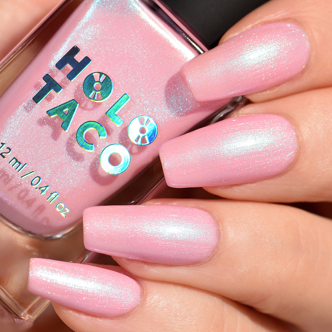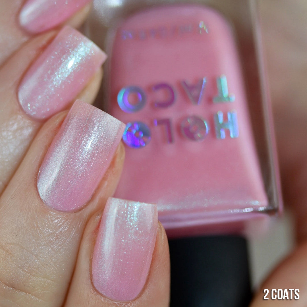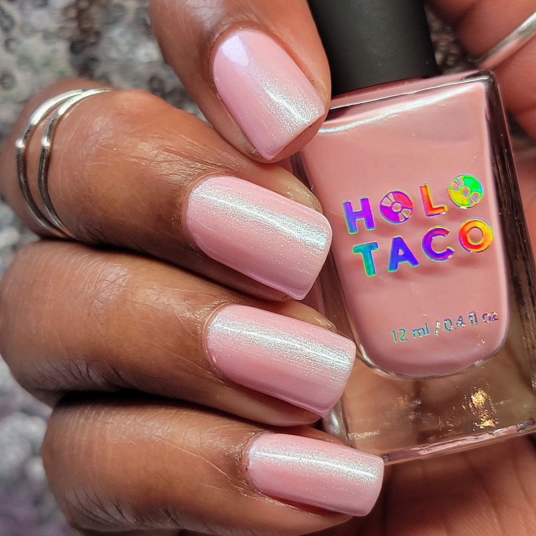 - Note: Shimmer nail polish shows best under direct sunlight, halogen bulbs, or just your phone camera flash! Swatch photos as pictured have one coat of Glossy Taco for optimal smoothness and shine.