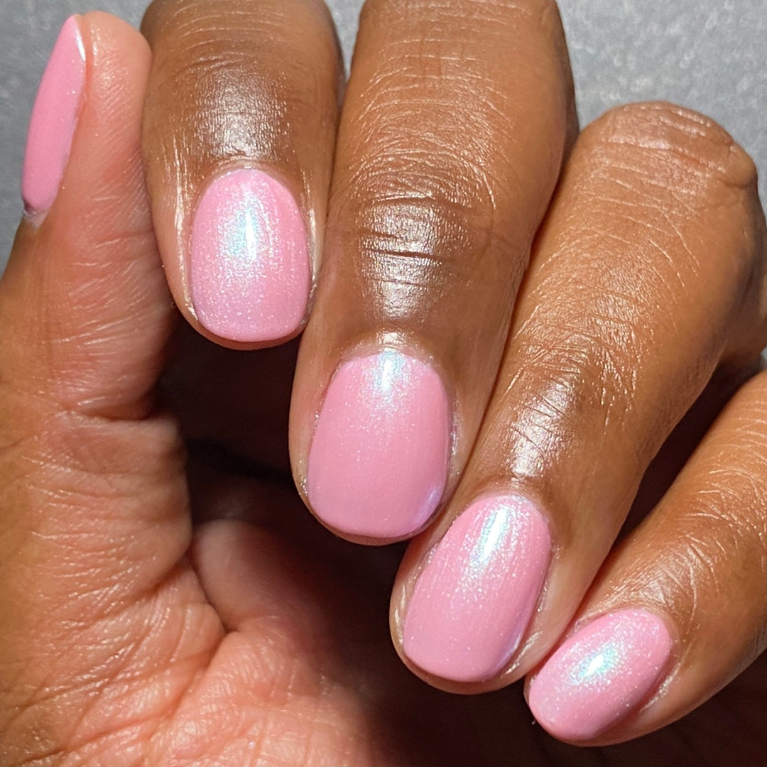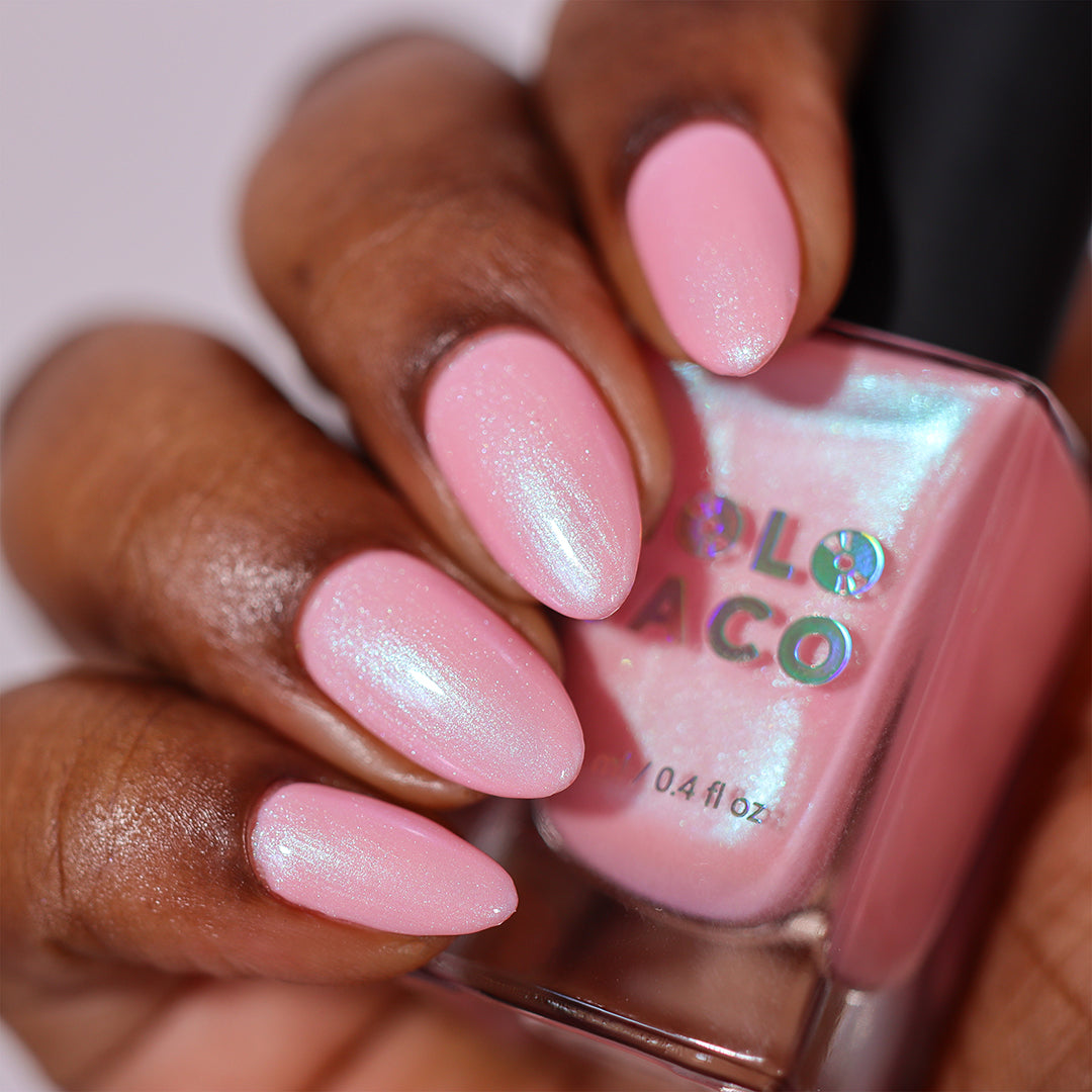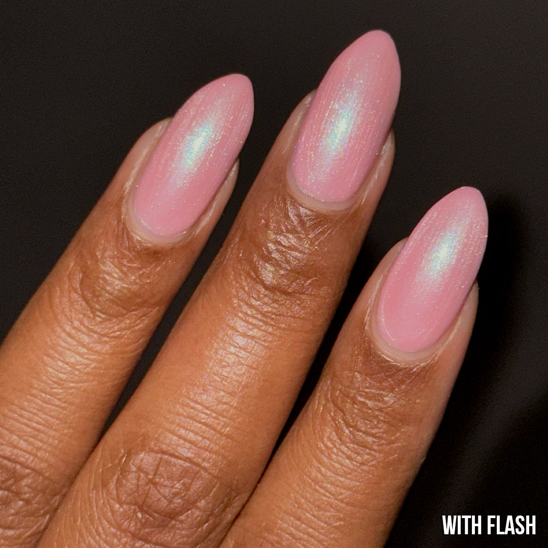 Prepare to hitch a ride up to Cloud Nine. Glide on this sweet and subtle baby pink shade and rise above the noise of life with calming glistens of bright cyan micro-shimmer. We’re elated to take your nail painting to brand new heights… just don’t look down.