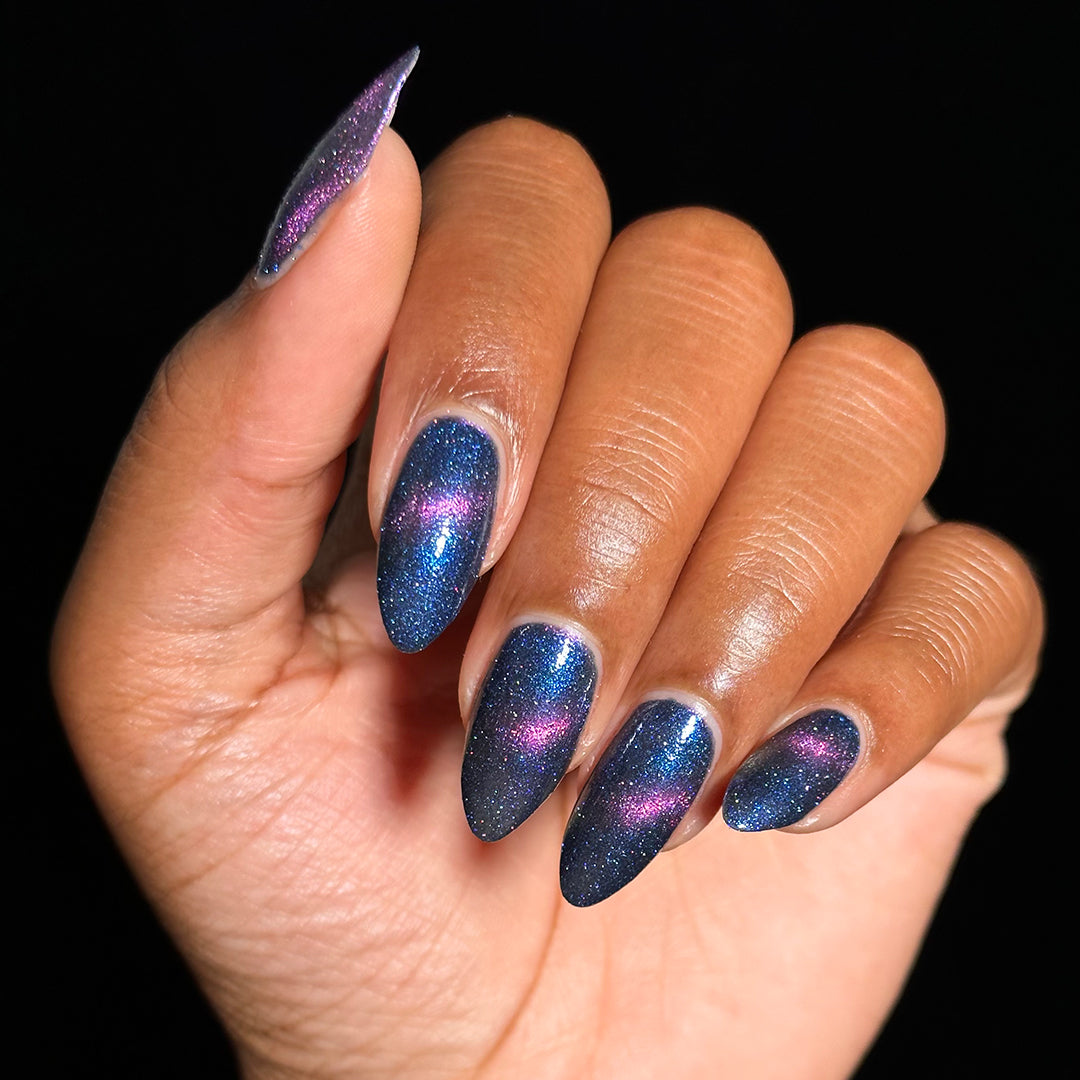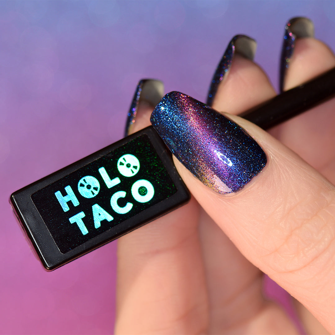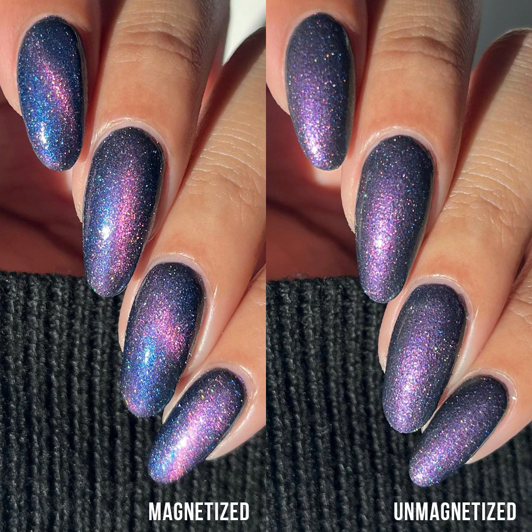 I think this color is absolutely gorgeous, however I cannot seem to get it to stay magnetized. I even watched Simply's video to try and fix any mistakes, but nothing I tried worked. I'm not sure if I got a dud polish or a dud magnet (I did not receive a magnet either so I used one I had from another Holo Taco magnetic polish). The color is beautiful on its own, but I'm still just a bit sad that it does not have that magnetic effect you want to have with magnetic polishes.