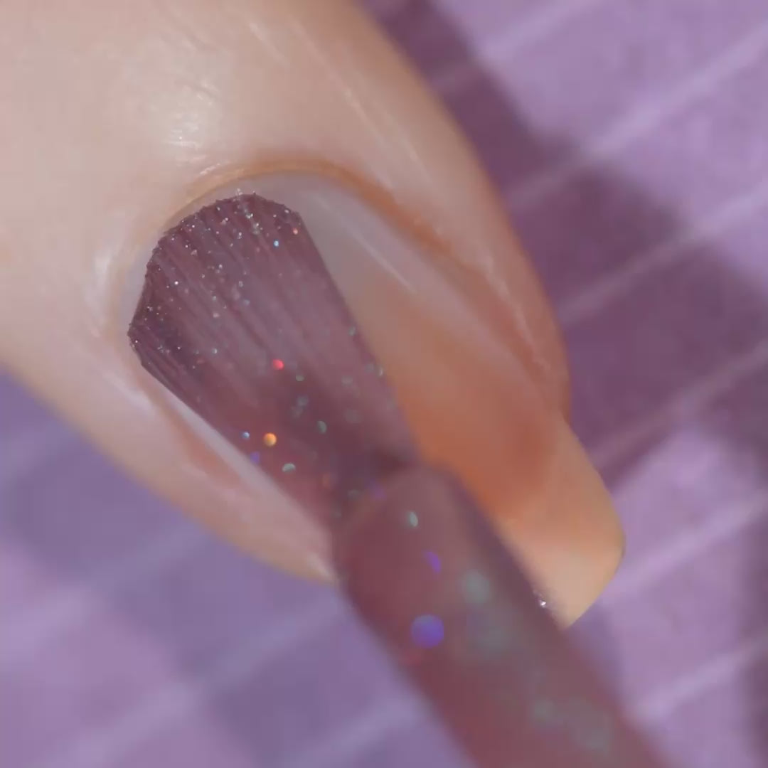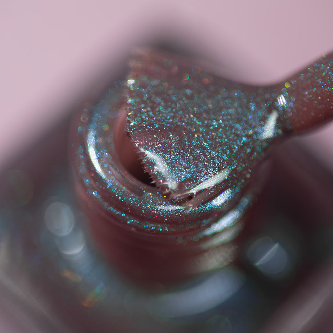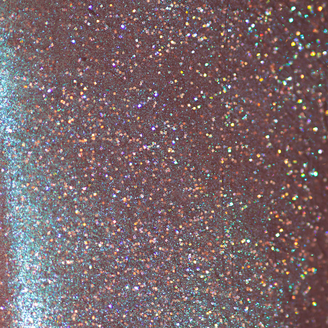 Mauve-brown jelly with iridescent cyan blue micro-shimmer