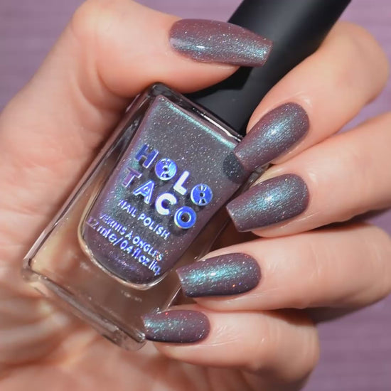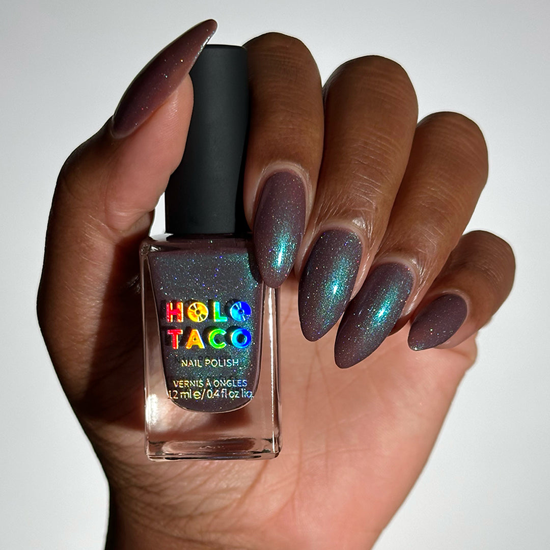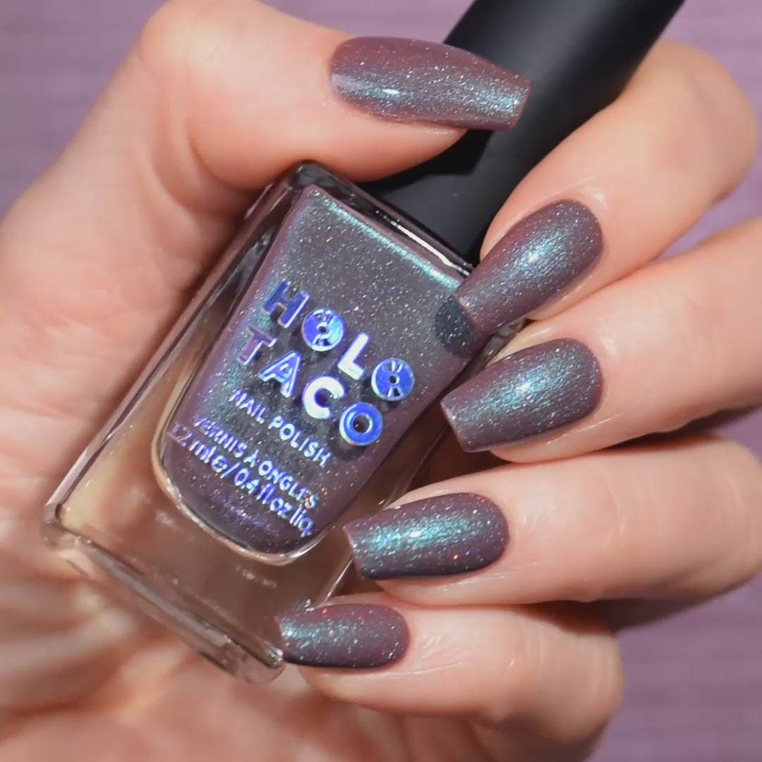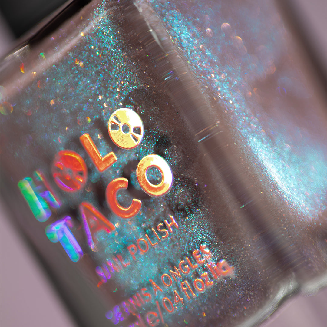 Note: Shimmer nail polish shows best under direct sunlight, halogen bulbs, or just your phone camera flash! Swatch photos as pictured have one coat of Glossy Taco for optimal smoothness and shine. Super-pigmented shades may cause staining depending on the porousness of the nail and the use of a protective base coat. Polish should be stored in a cool, dark place to keep it at its best for longer and to prevent the colour or consistency from changing.