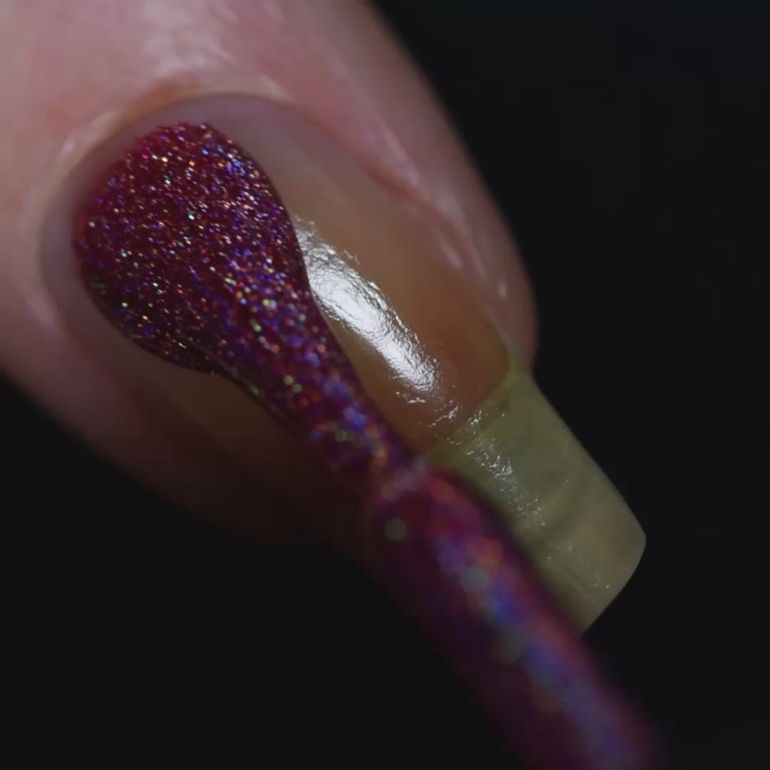 - Note: Holographic nail polish shows best under direct sunlight, halogen bulbs, or just your phone camera flash! Swatch photos as pictured have one coat of Glossy Taco for optimal smoothness and shine. Super-pigmented shades may cause staining depending on the porousness of the nail and the use of a protective base coat.