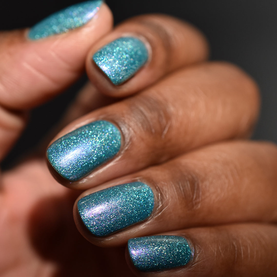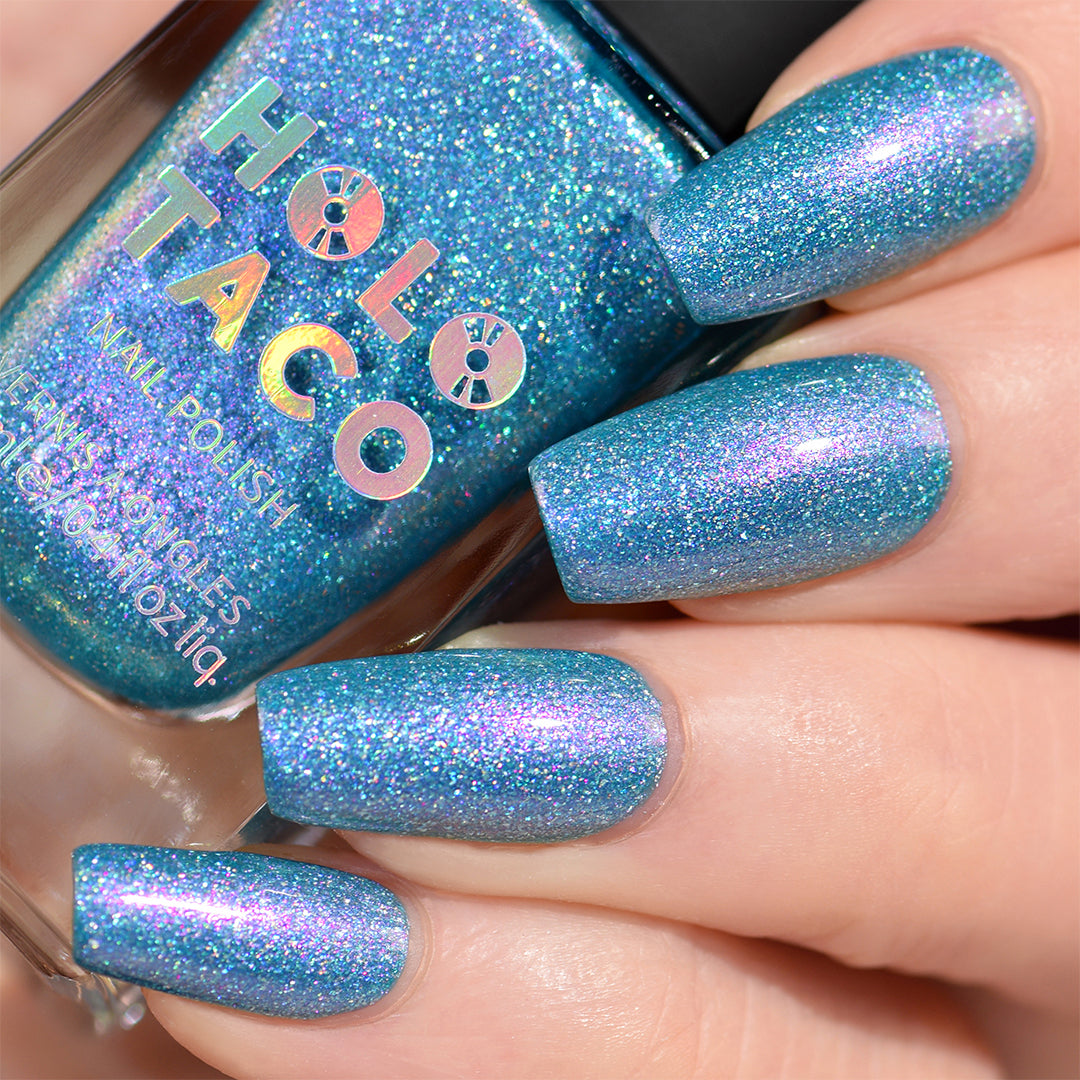 Legend says this shade is made from heartbreak and high-noon standoffs. Cowboy Tears is a turquoise crushed holo with purple micro-shimmer—and it has a scandy past.