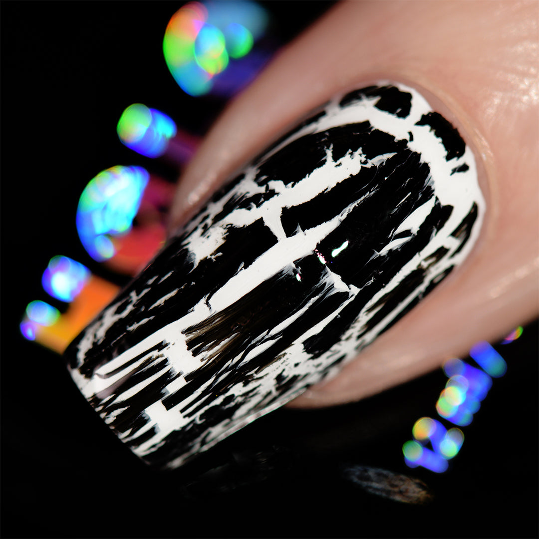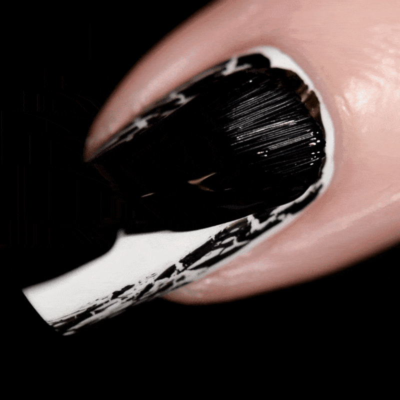 - Specialty black crackle topper that creates a shattered effect as it dries, revealing the shade of polish layered underneath