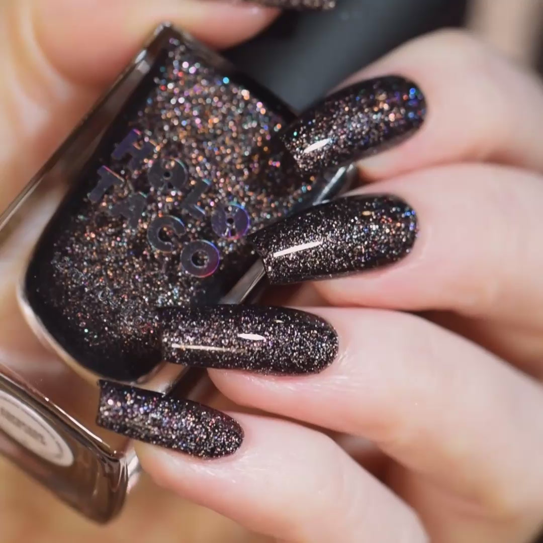 I love the crushed holo formula. Good fall shade, or year round for all of my brown skittle manis