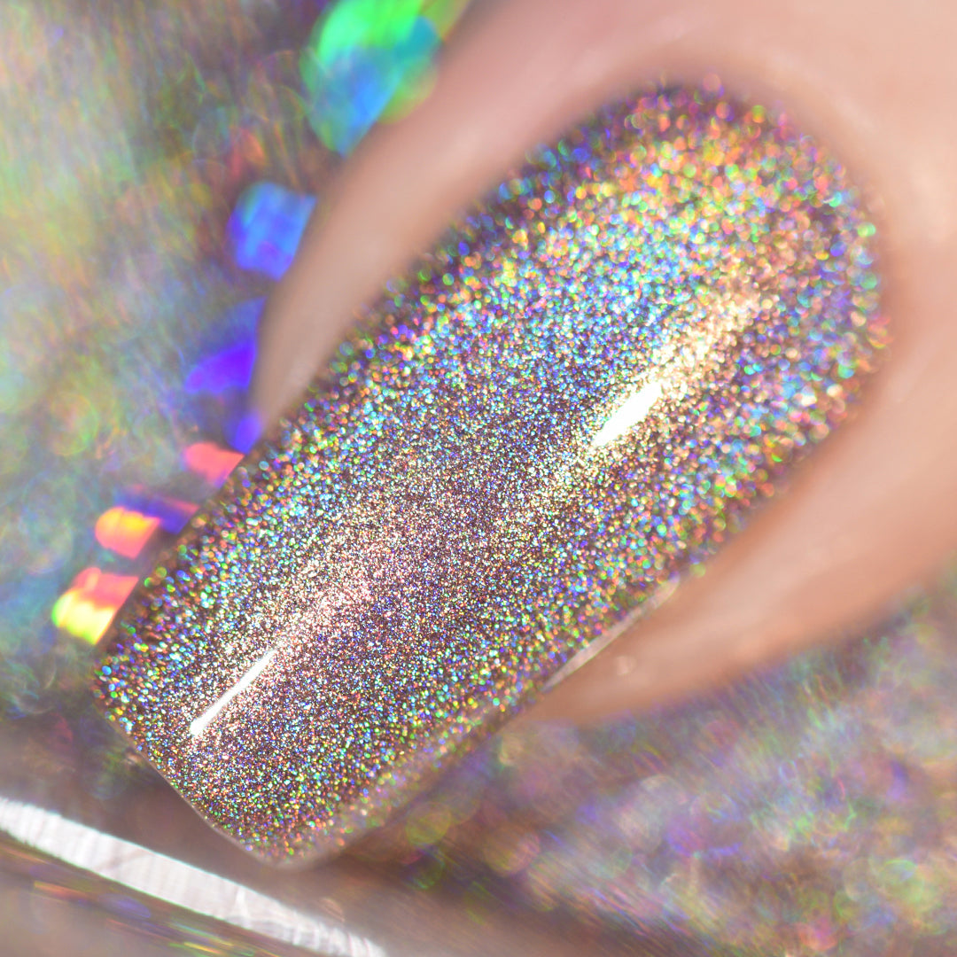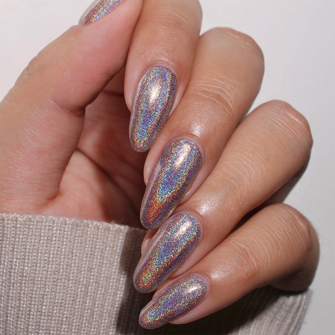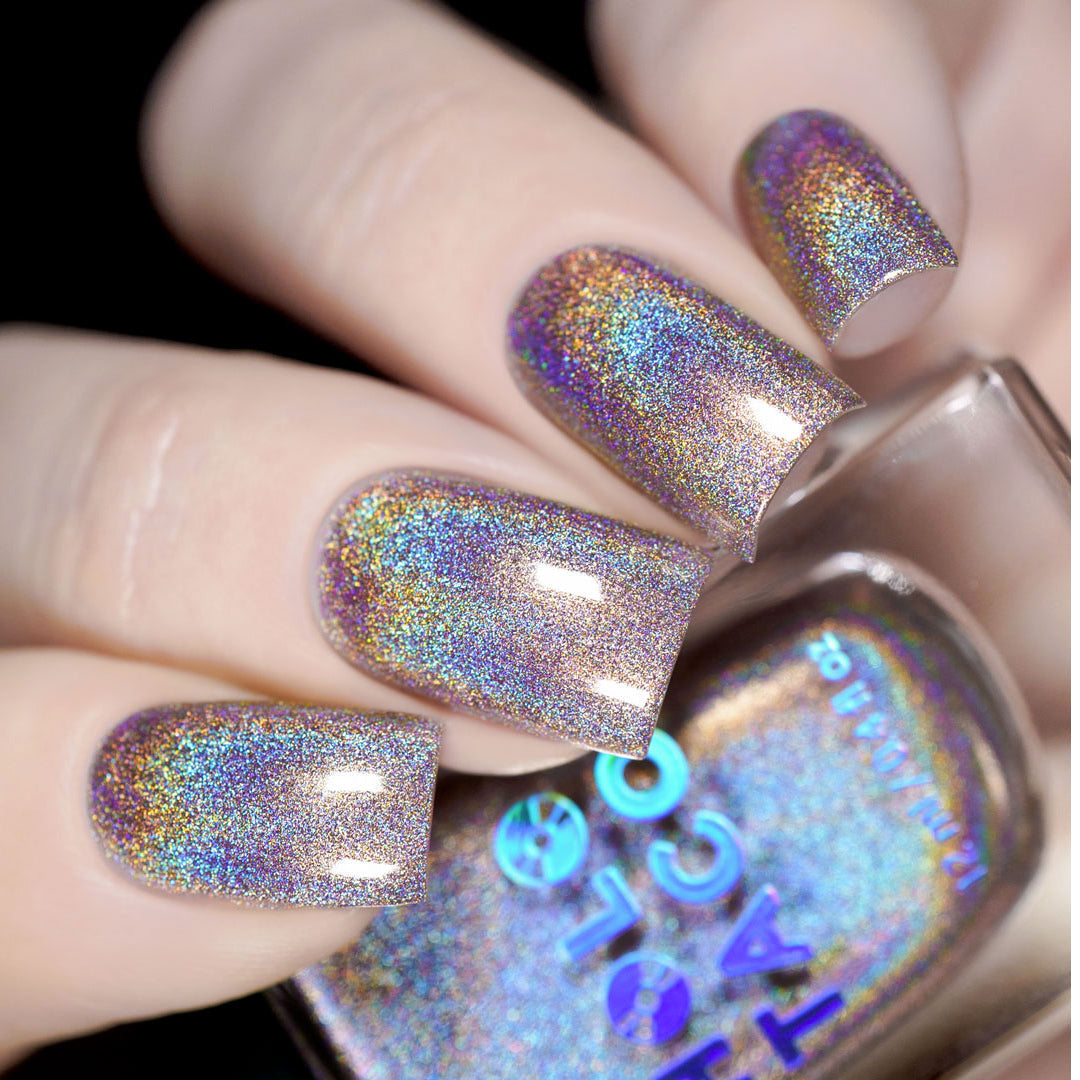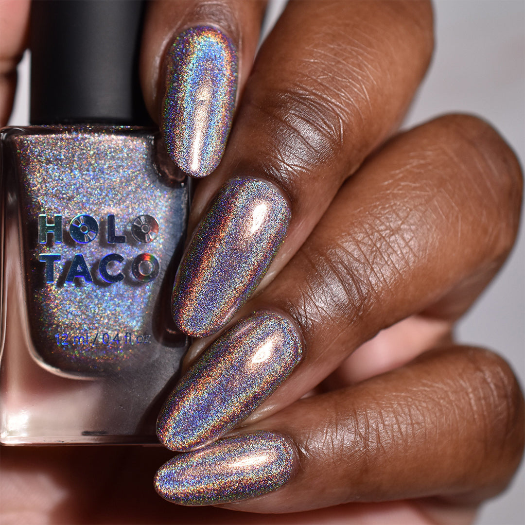 - Note: Holographic nail polish shows best under direct sunlight, halogen bulbs, or just your phone camera flash! Swatch photos as pictured have one coat of Glossy Taco for optimal smoothness and shine.