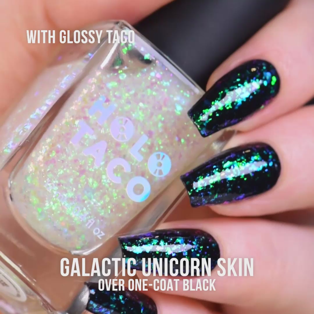 - Transformation tip: Try layering a holographic topper (Flakie, Scattered or Linear) over a Unicorn Skin for a magical Holo Taco Combo, or finish with a coat of Matte Taco over a Unicorn Skin to unlock matte nail mysteries!