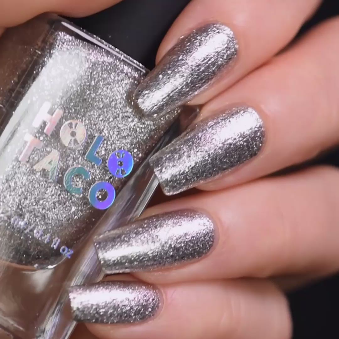 - Holo Taco bonus tip: Try layering a holographic topper or a Unicorn Skin over a metallic foil polish for an extra-transformative look!