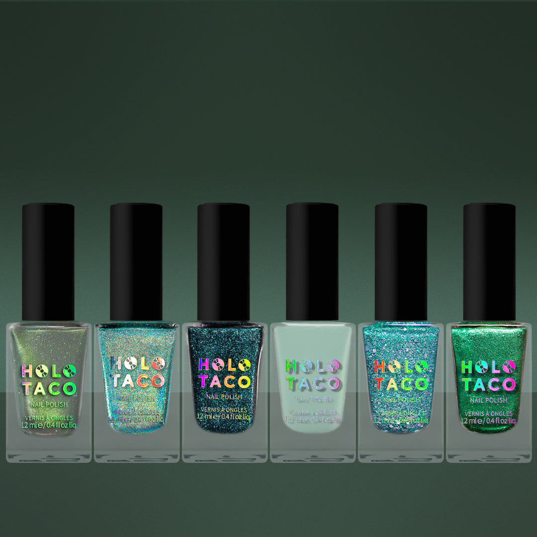 Set includes 6 polishes: Alien Infatuation, Mint Mojito, Venetian Views, Stop Buggin', Thyme After Thyme, Bonus Life