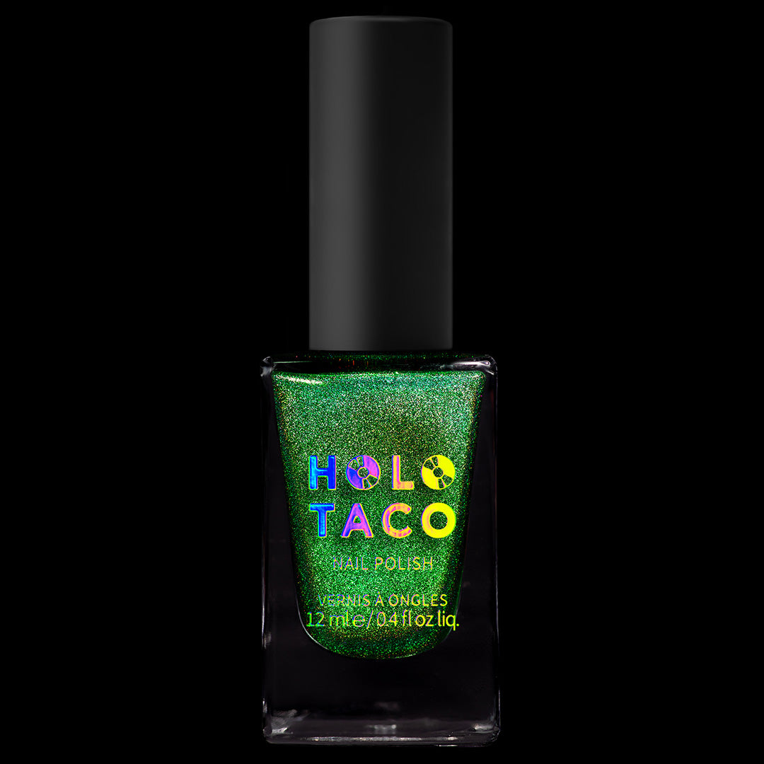 - Note: Holographic nail polish shows best under direct sunlight, halogen bulbs, or just your phone camera flash! Swatch photos as pictured have one coat of Glossy Taco for optimal smoothness and shine. Super-pigmented shades may cause staining depending on the porousness of the nail and the use of a protective base coat.