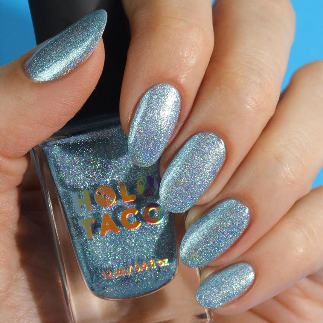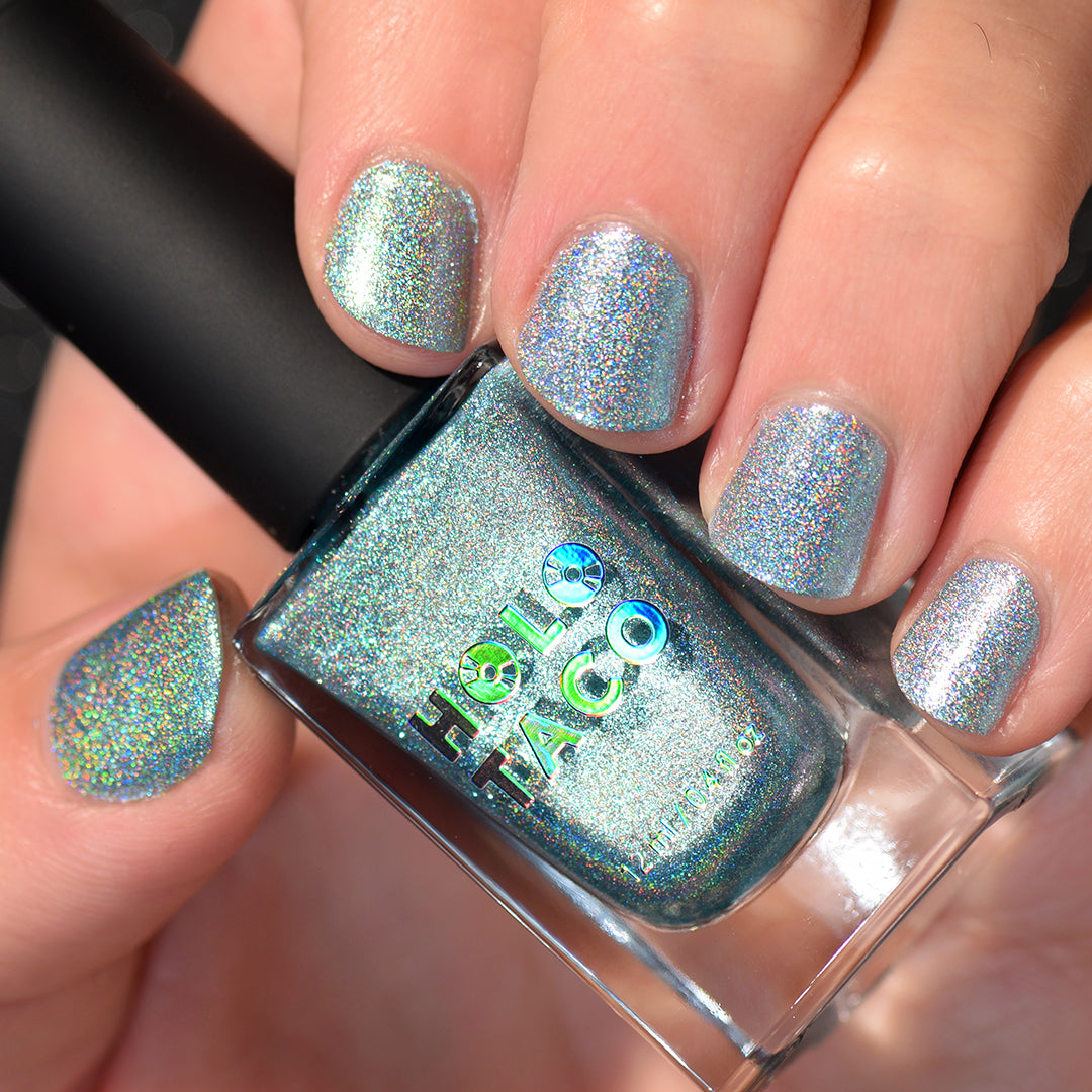 - Note: Holographic nail polish shows best under direct sunlight, halogen bulbs, or just your phone camera flash! Swatch photos as pictured have one coat of Glossy Taco for optimal smoothness and shine.