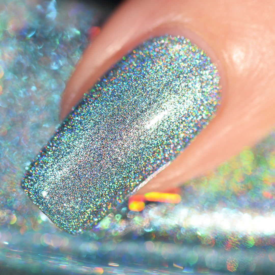 This one is a little thick but really pretty. The holo in it is so fiery and the aqua is soo icy almost silvery.