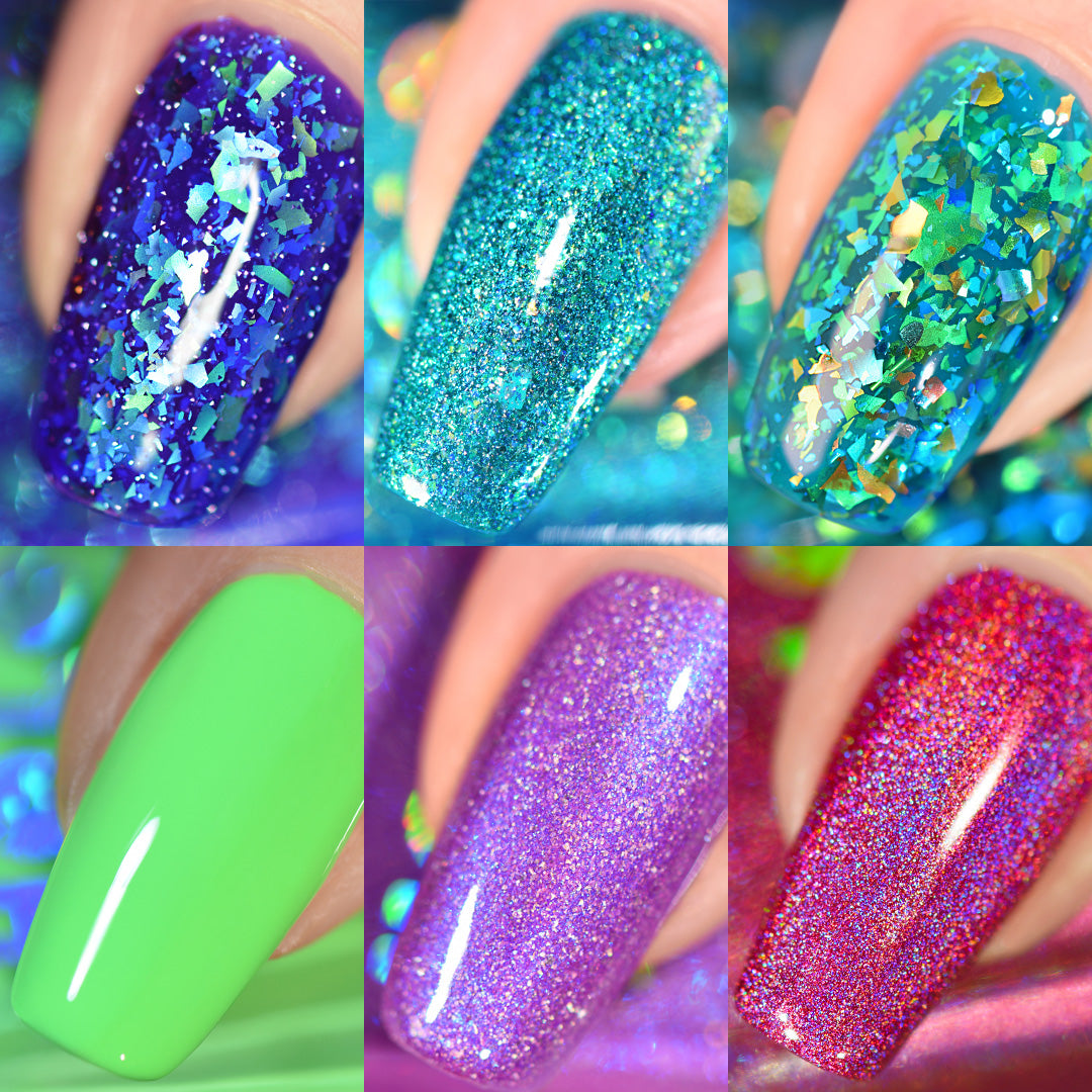 Set includes 6 polishes: Made Me Ink, Never Tide Down, Wade A Minute, So Toxic, Electric Sweetener, Hot-Wire Pink