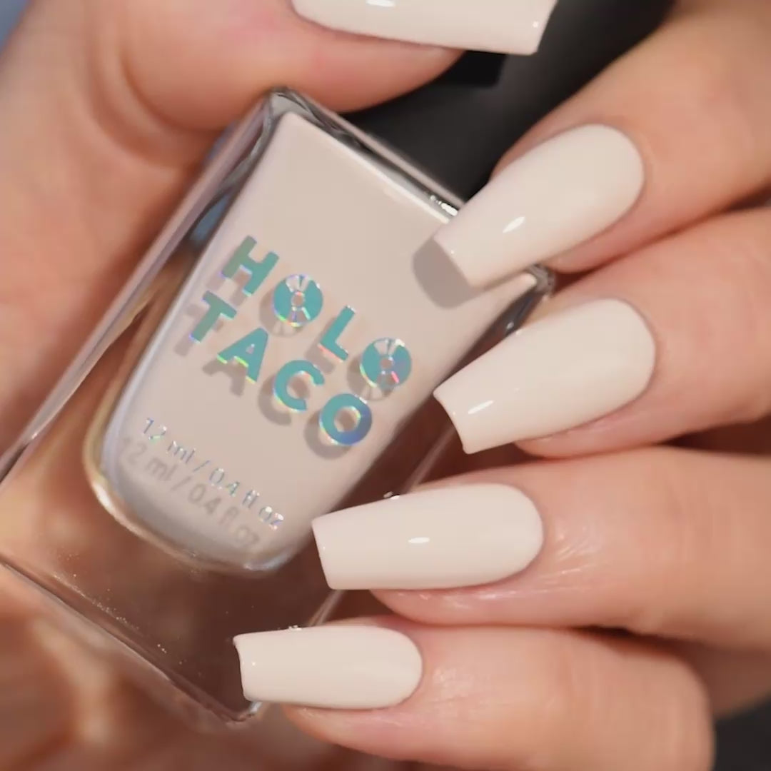 - Off-white warm ivory polish with a crème formula