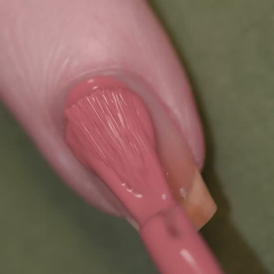 - Warm blush pink polish with a crème formula