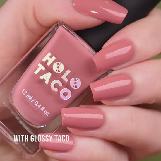 - Swatch photos as pictured have one coat of Glossy Taco for optimal smoothness and shine. Also pictured: crème polish with a coat of Matte Taco.