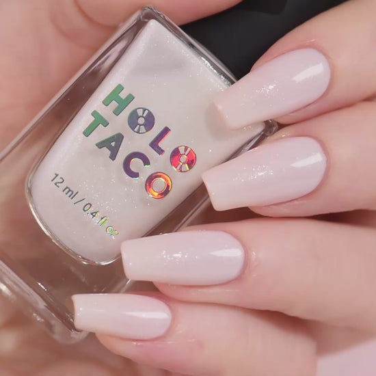 - Milky white jelly base with fine white shimmer for a clean glowing look