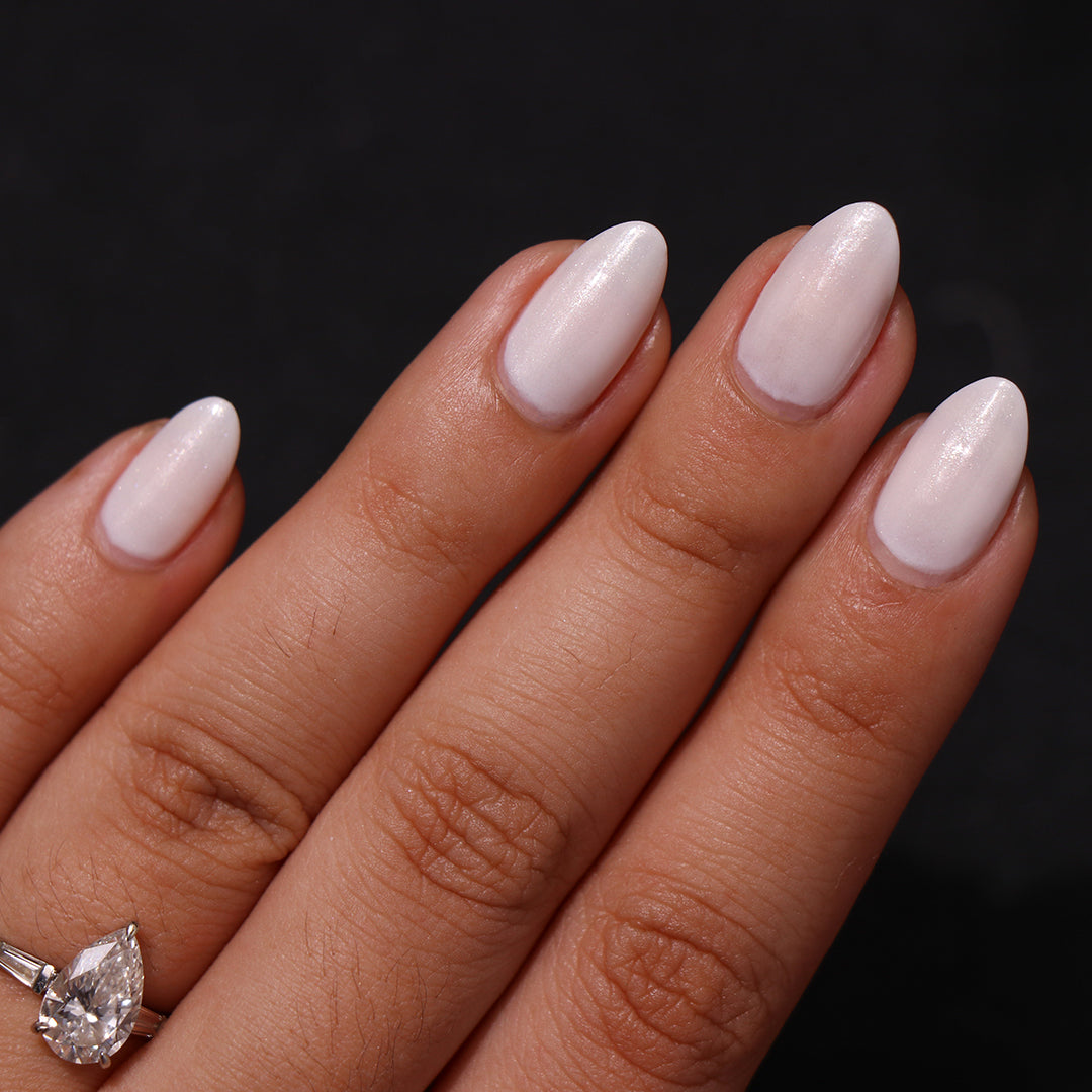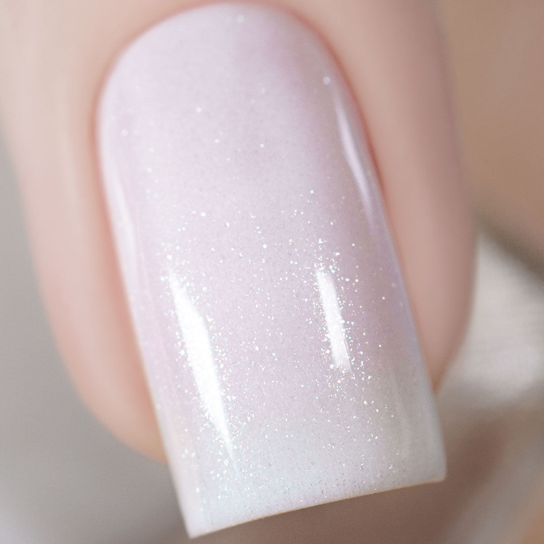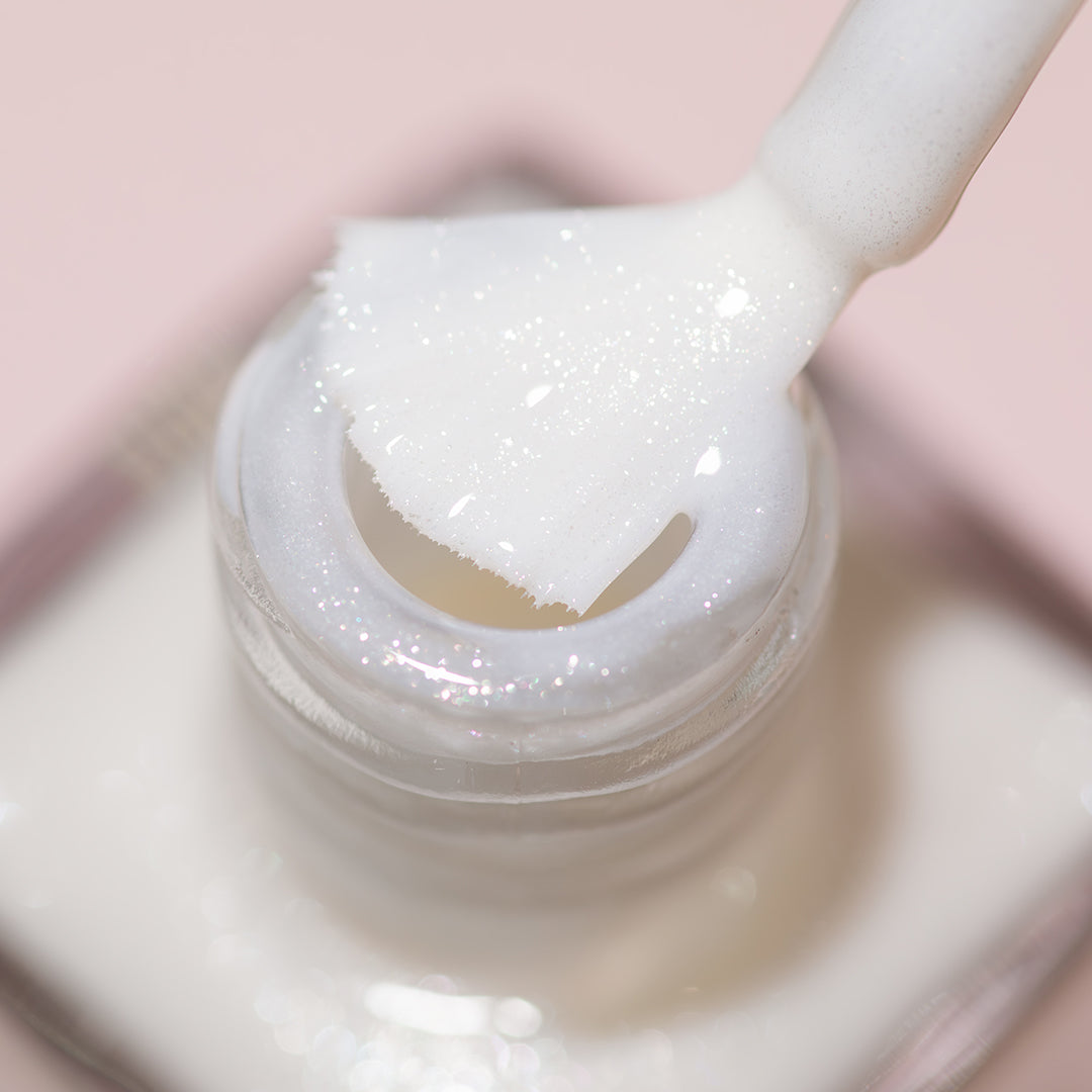 - Milky white jelly base with fine white shimmer for a clean glowing look
