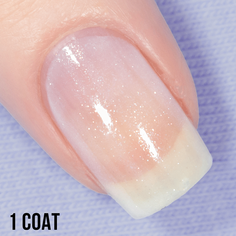 - Buildable sheer formula for semi-translucent coverage in 2-3 coats that faintly shows your visible nail line (the white edge of your natural nail) when less coats are used, depending on your nail length and type of base coat applied first