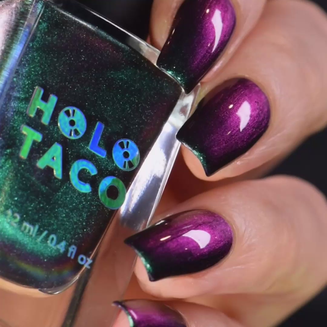 This polish! I’m obsessed with it! Everyone I work with has been amazed by it. The way the color shifts so beautifully based on lighting is incredible. My first purchase of holo taco and I cannot recommend it enough.