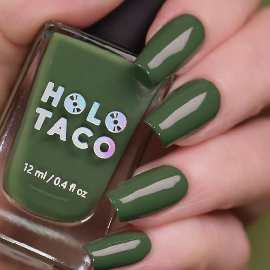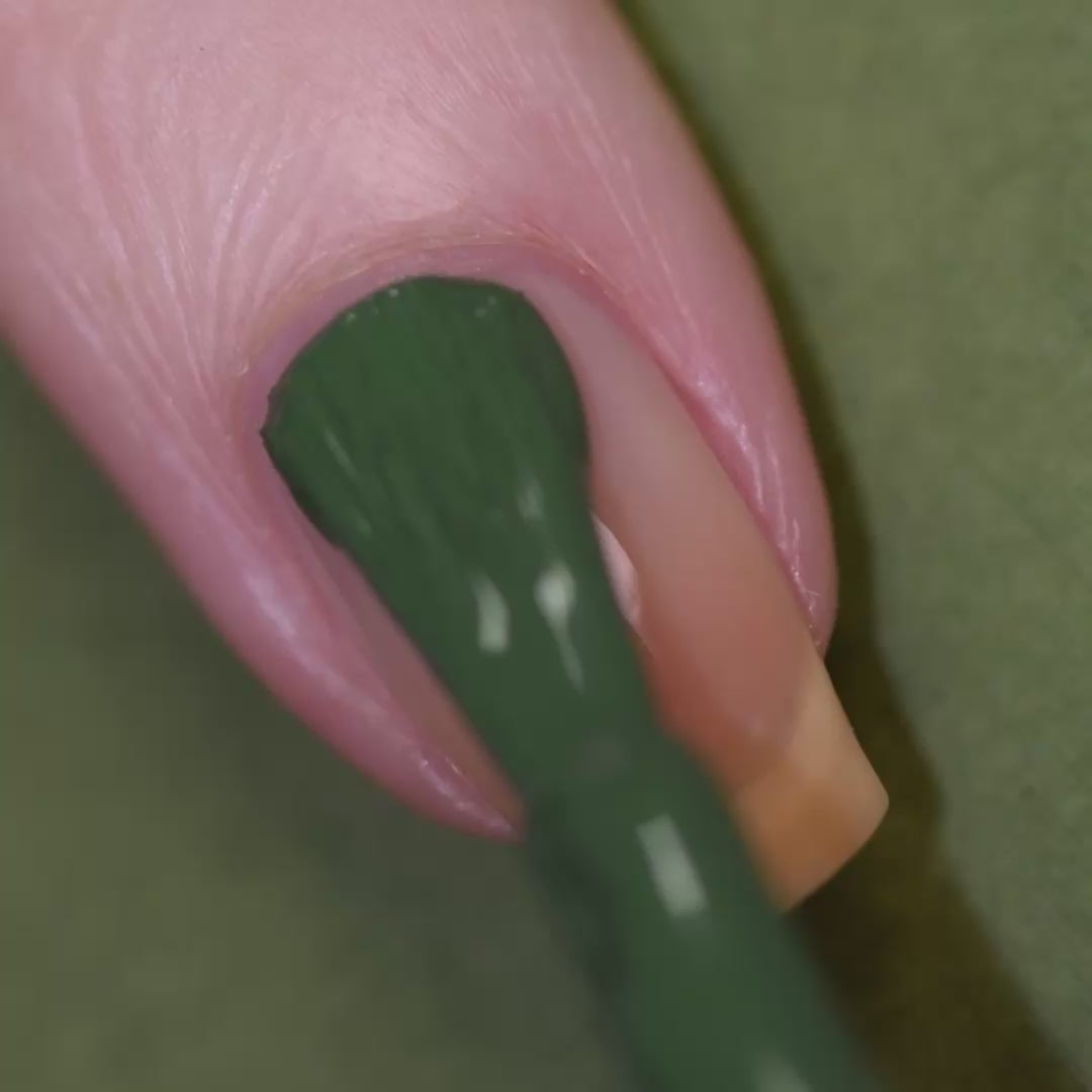 - Dark mossy green polish with a crème formula