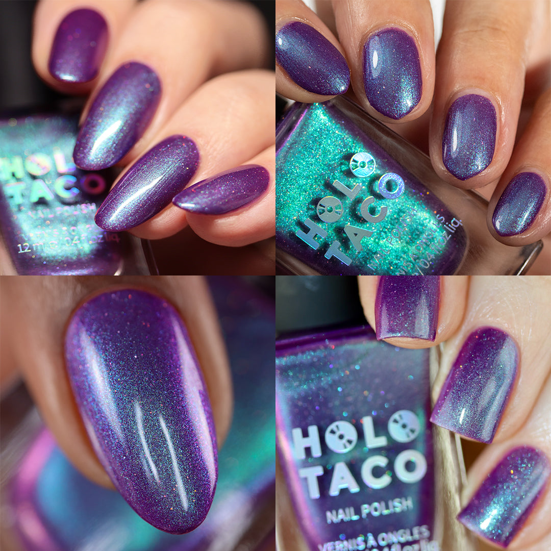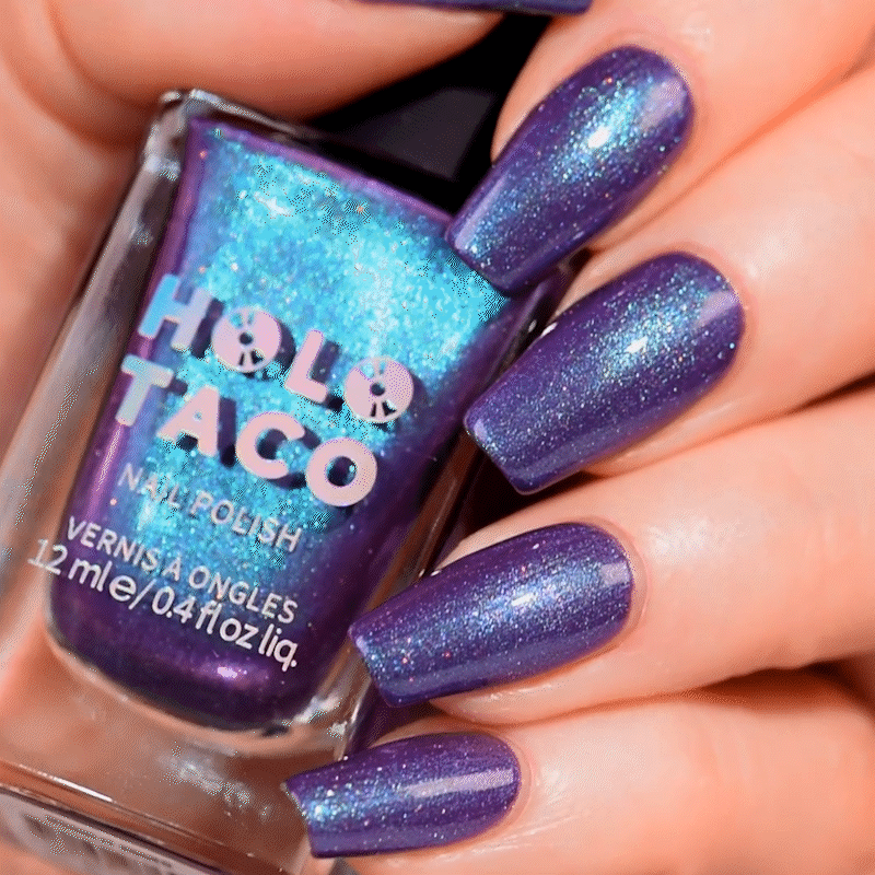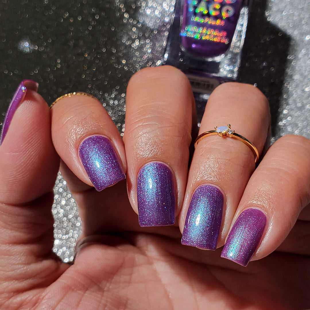 Note: Shimmer nail polish shows best under direct sunlight, halogen bulbs, or just your phone camera flash! Swatch photos as pictured have one coat of Glossy Taco for optimal smoothness and shine.