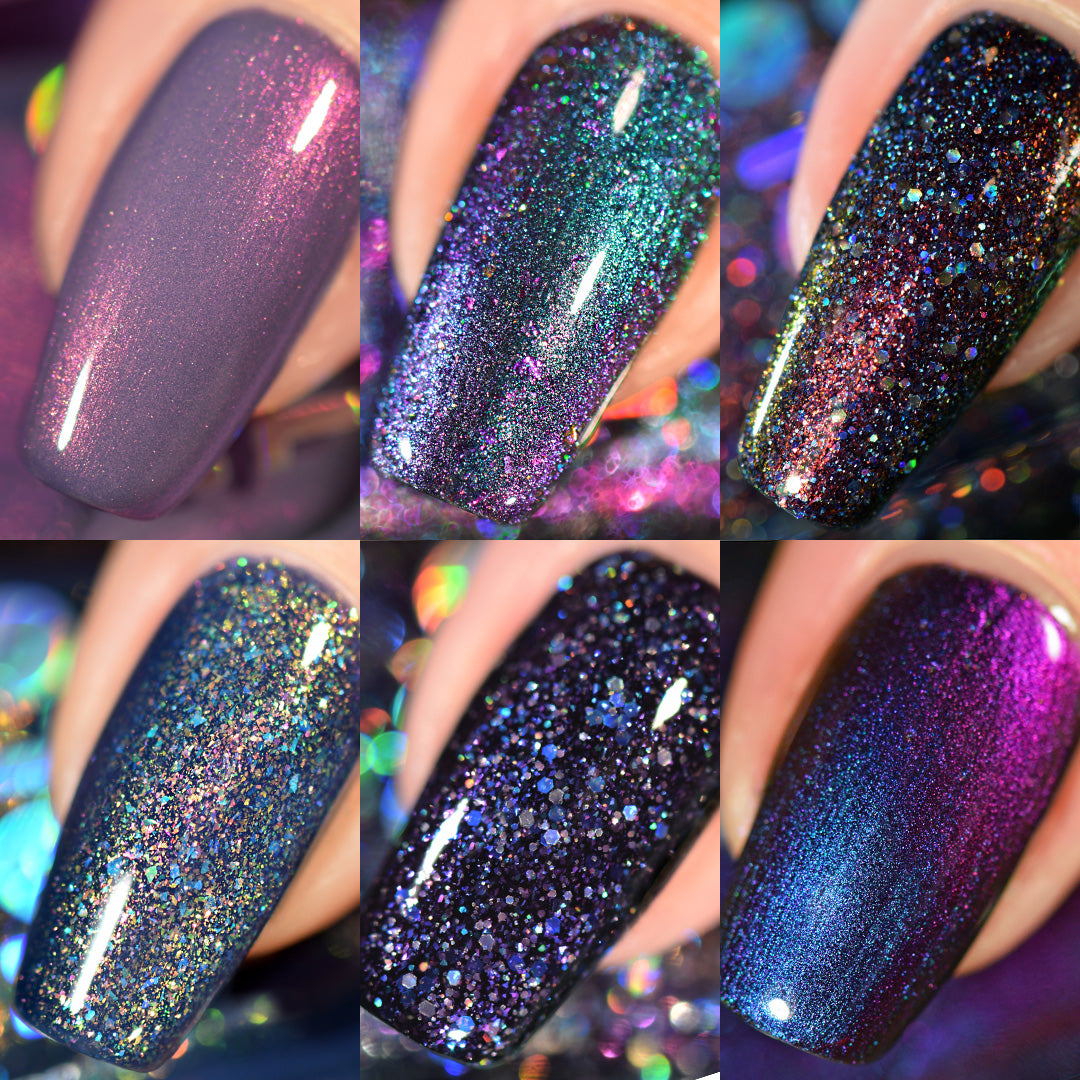 Set includes 6 polishes: Nature Calls, Existential Crisis, Camera Shy, The Price Is Alexandrite, Midnight Owl, Purple With Envy