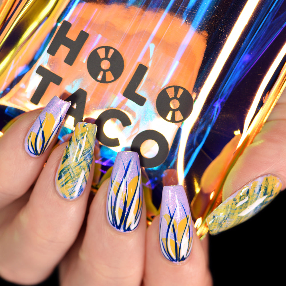 - Five nail art brushes made with high quality durable cruelty-free vegan synthetic nylon bristles: fan brush, mid-length brush, angled flat brush, striping brush and detail brush.