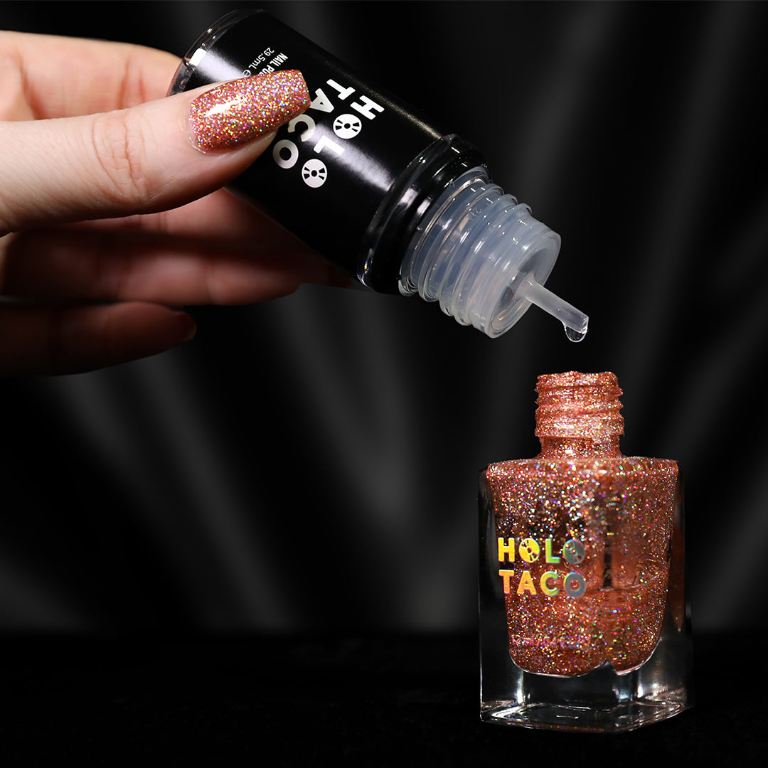 - Safe to use with all Holo Taco nail polishes, base and top coats (except Peely Base due to its water-based formula)