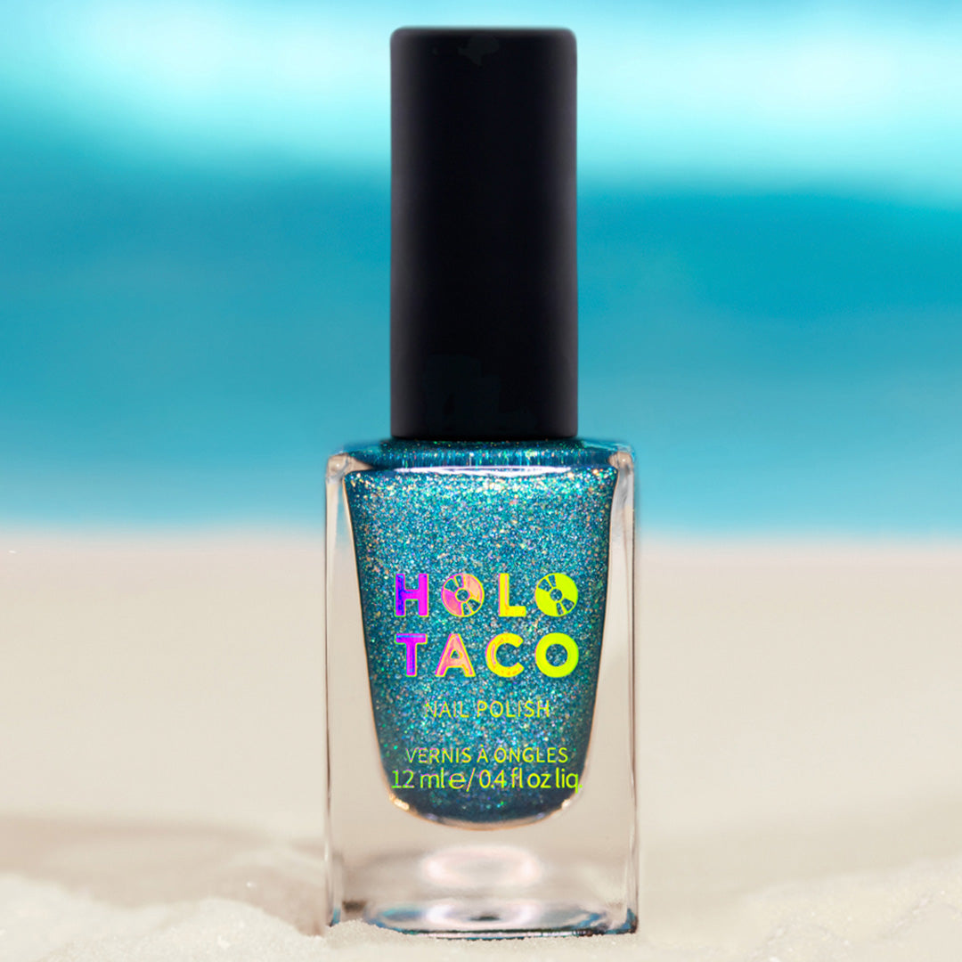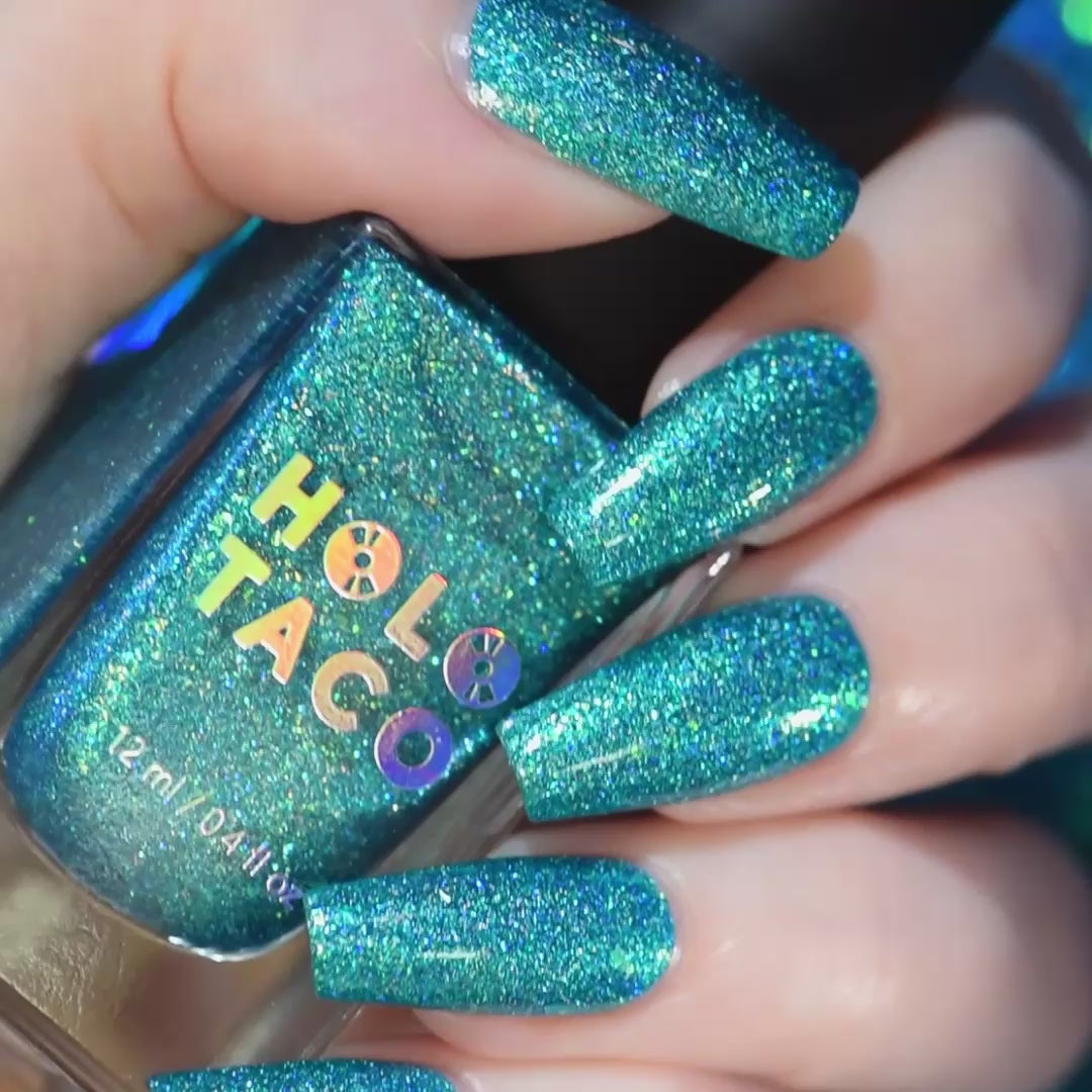 Note: Holographic nail polish shows best under direct sunlight, halogen bulbs, or just your phone camera flash! Swatch photos as pictured have one coat of Glossy Taco.