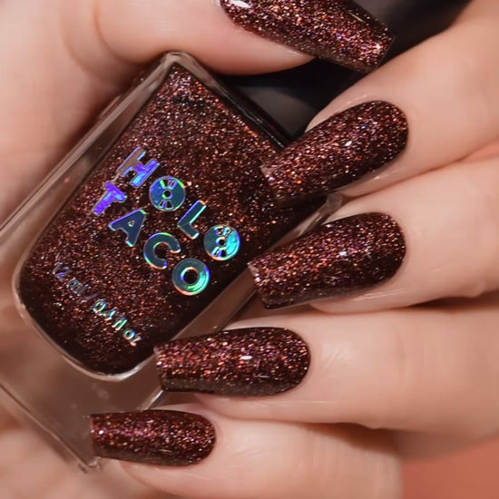 - Note: Holographic nail polish shows best under direct sunlight, halogen bulbs, or just your phone camera flash! Swatch photos as pictured have one coat of Glossy Taco for optimal smoothness and shine.