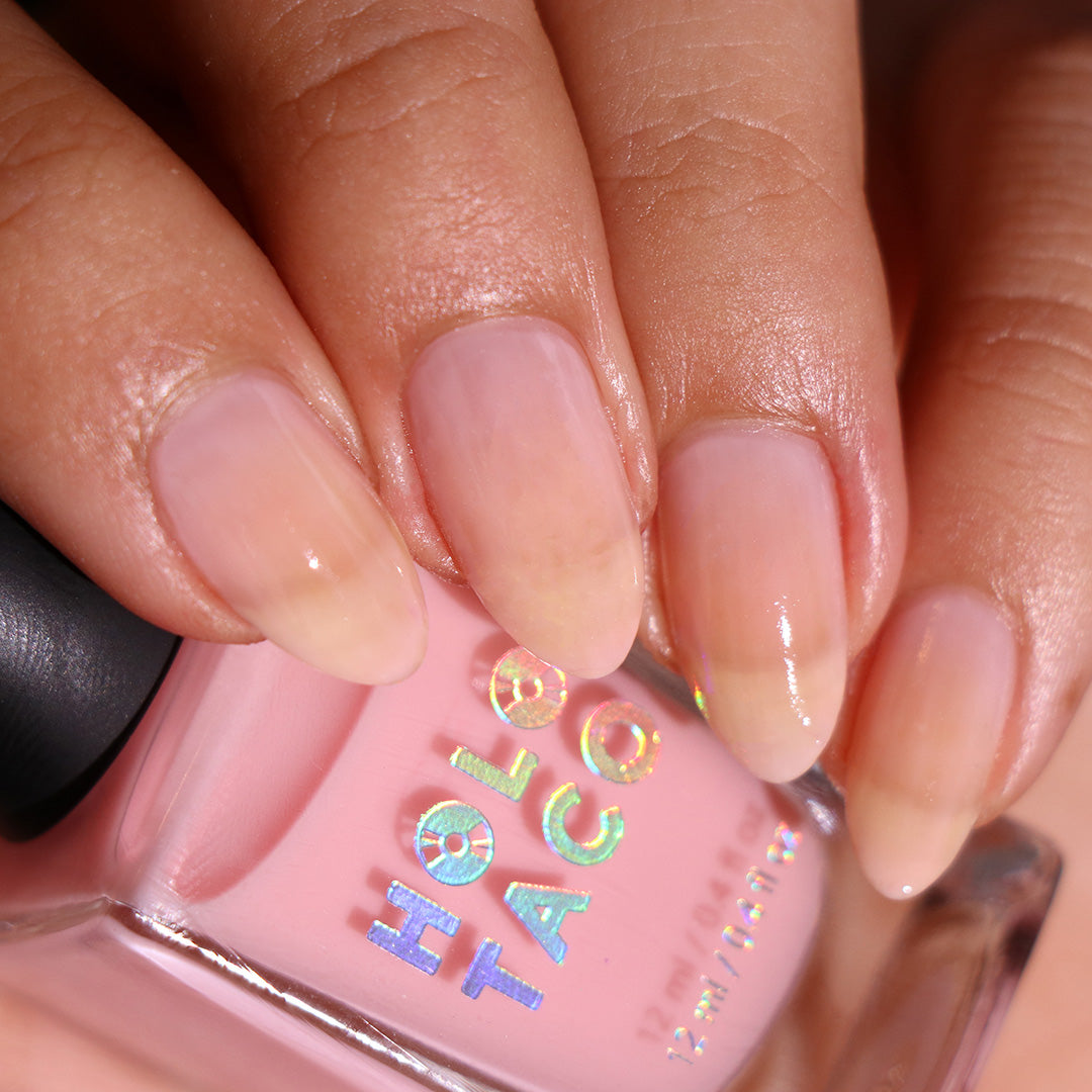 This is the third type of base coat that I've tried, and I think it might be my favorite? Peely Base works too well for me (they literally pop off on their own within 24 hours, lol) and Quick-Dry base is good, but sometimes will peel up like it's peely base. This one I haven't gotten the chance to use very much, but it seems to be keeping everything in place, 3 days after my manicure. Also looks lovely on its own or with glossy taco (soap nails, anyone?)