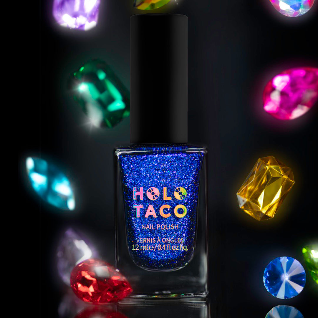 - Note: Holographic nail polish shows best under direct sunlight, halogen bulbs, or just your phone camera flash! Swatch photos as pictured have one coat of Glossy Taco for optimal smoothness and shine.