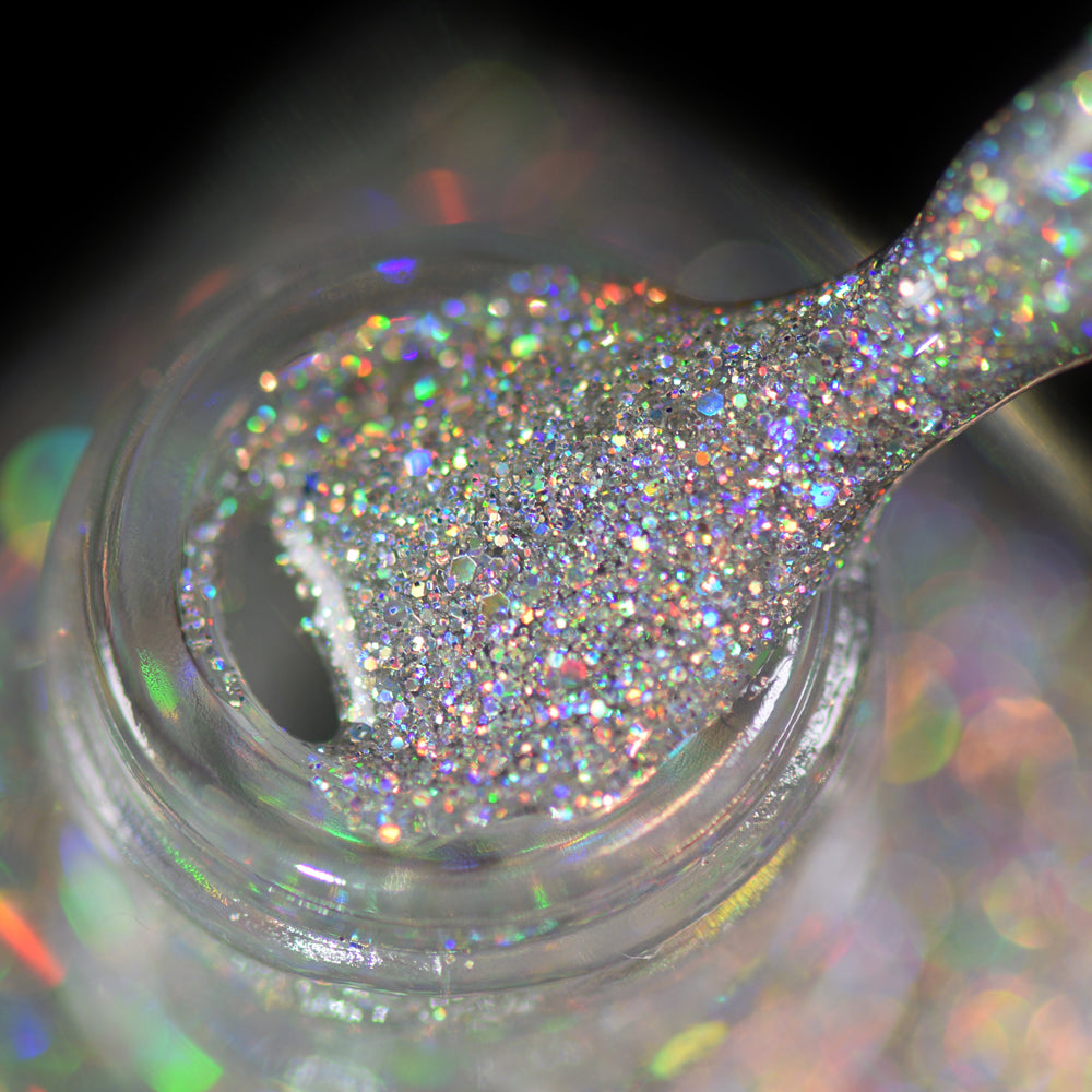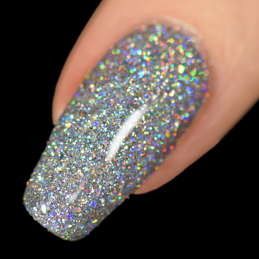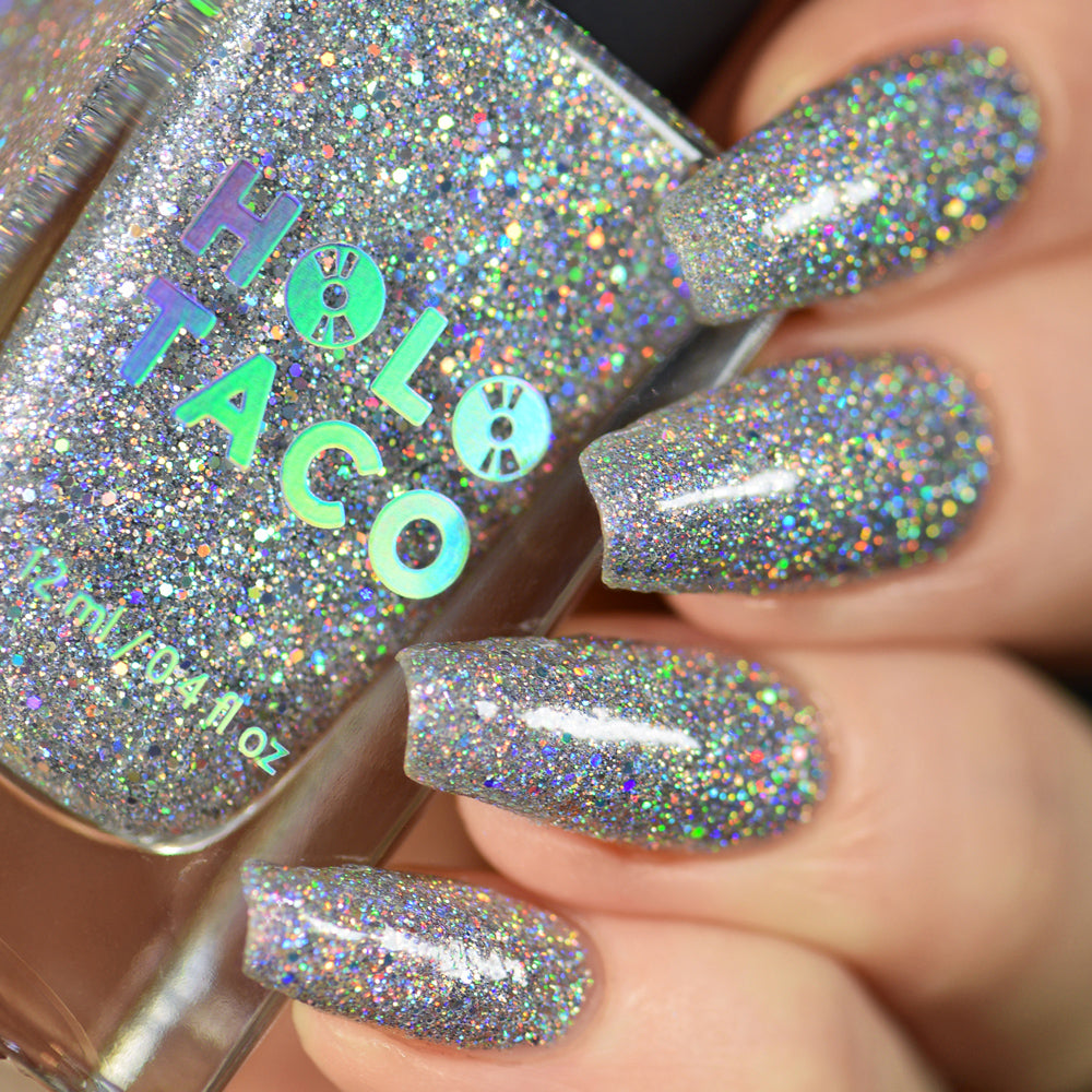 I love this polish! I think it's the purest form of holo possible. It glows so differently in different lights and it is sooooo rainbow. This is my repurchase of it cause I'm almost out of my original bottle!! It does get a little thick (but mine was from the OG holiday collection so like 4 years old!) but nothing a little thinner didn't resolve!
