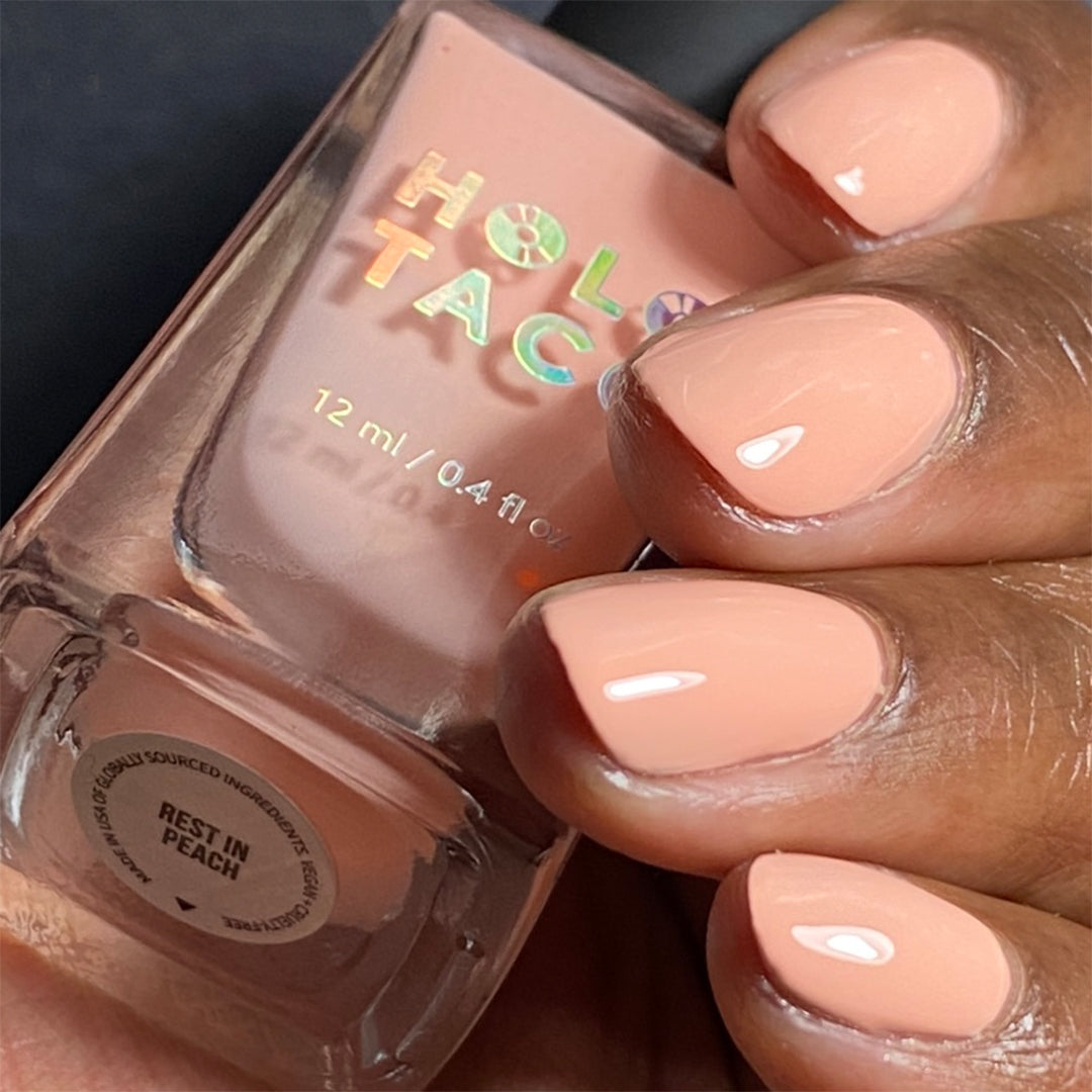 May boring nails Rest In Peach! Coat your fingertips with this pastel peach crème that’s so killer it will send you into an early retirement.