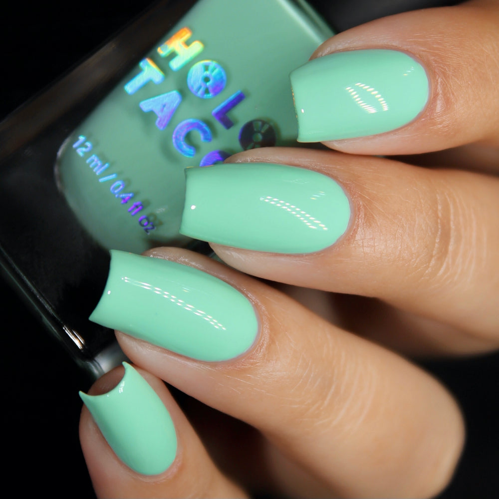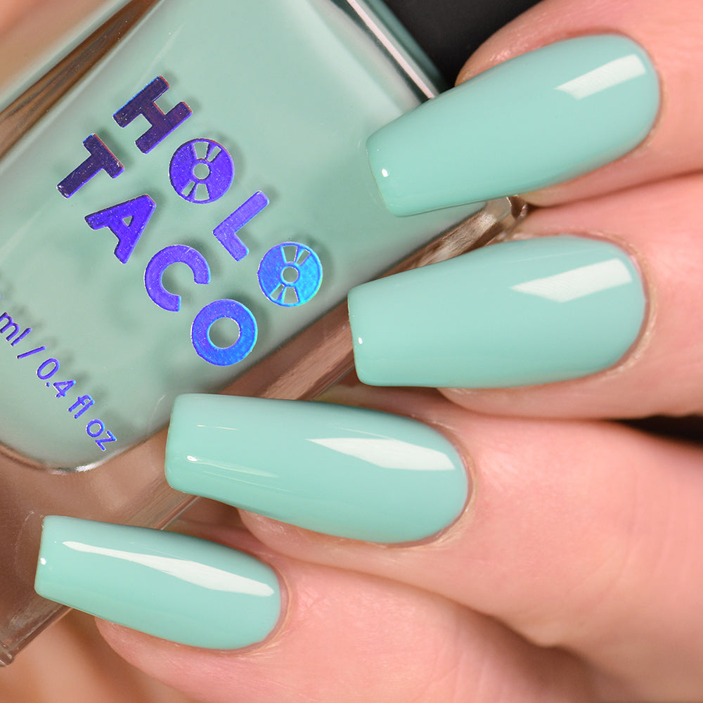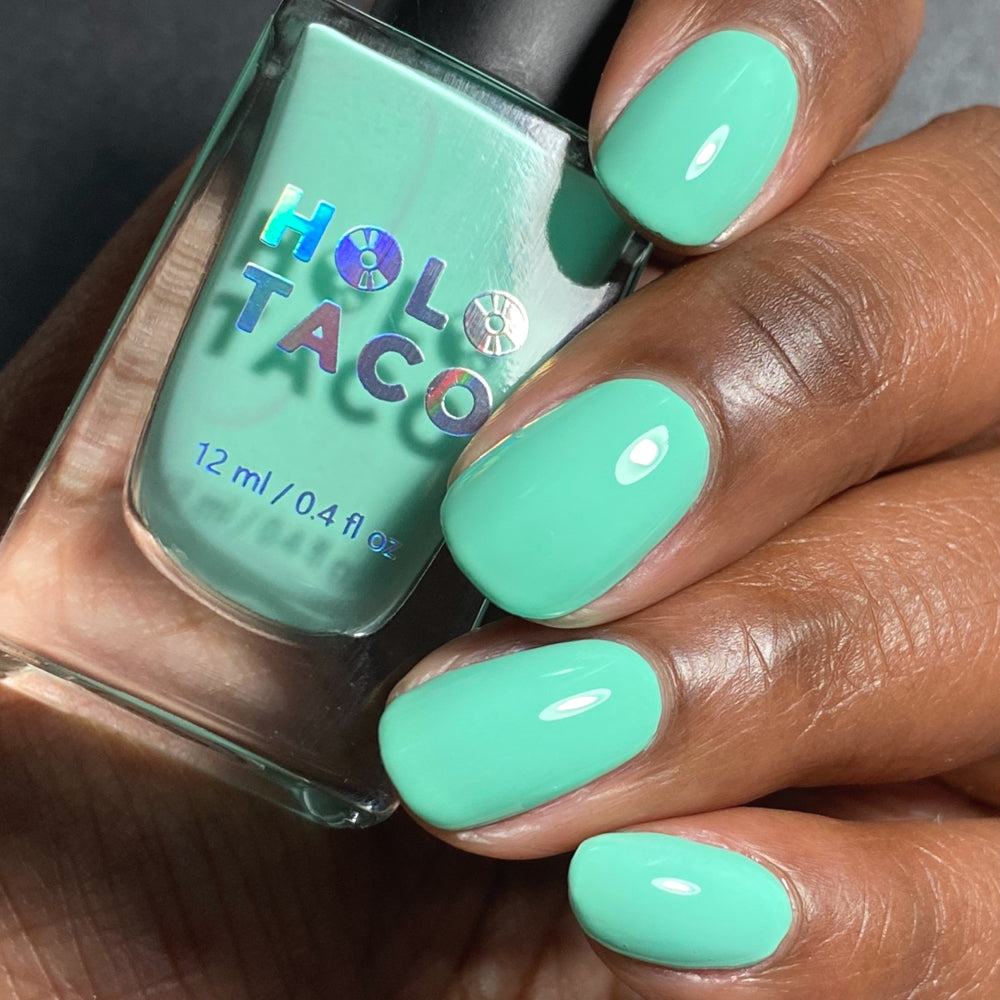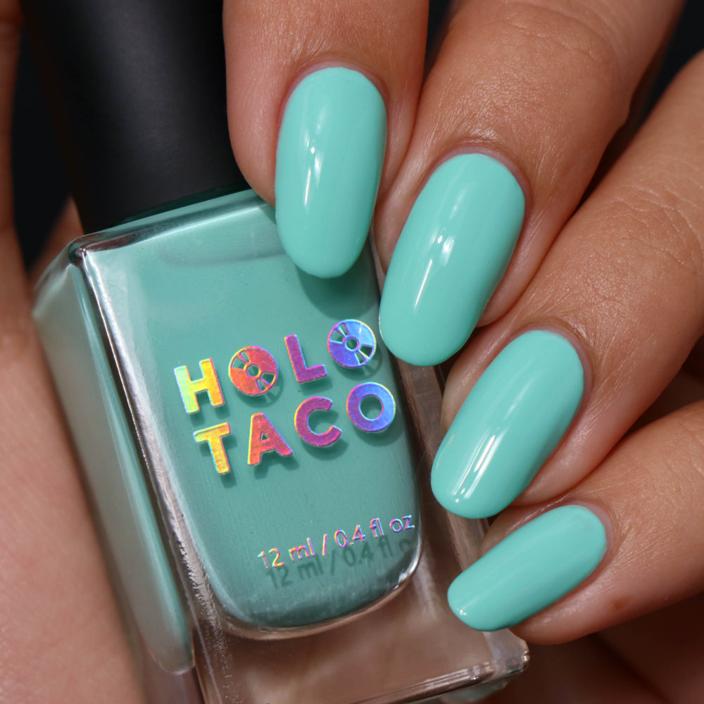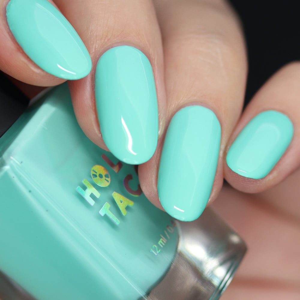 I absolutely adore sea foam home! This is my first purchase with holo taco and it automatically became one of my go to polishes. It applies easily, is perfectly opaque, and is long lasting. The color is vibrant and perfect for summer.
