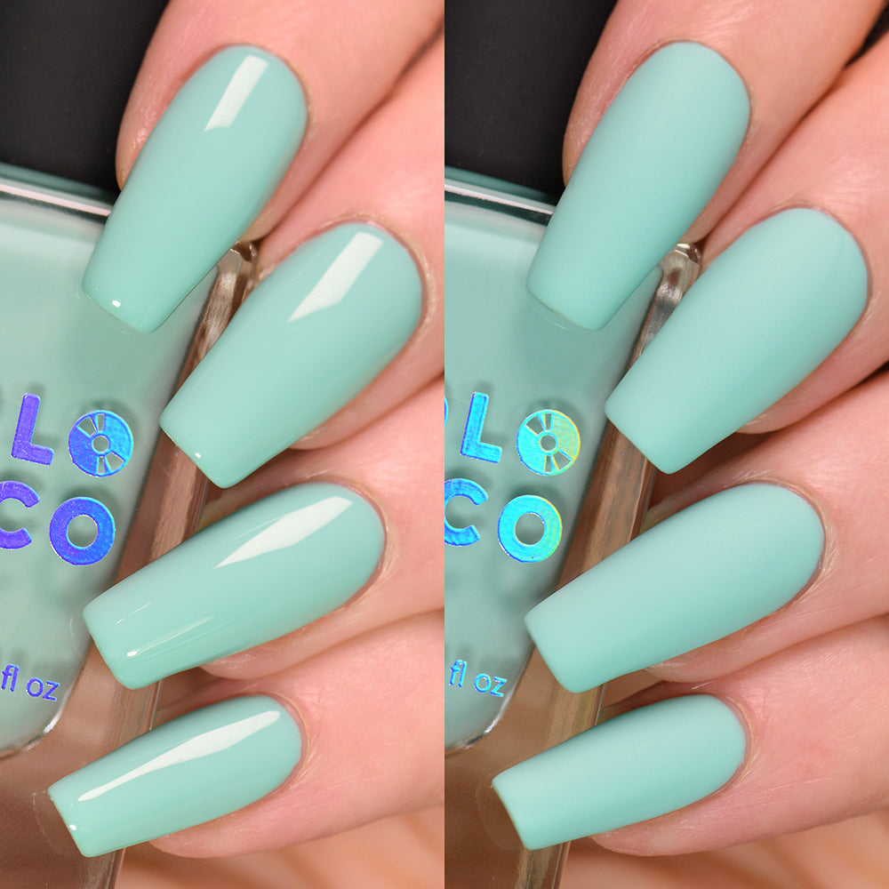 It’s past your bedtime, you better Sea Foam Home! Leave those texts unread because it’s your time to freshen up that mani with this bright cool mint crème polish. These nails + sweet pyjamas = fresh fit!