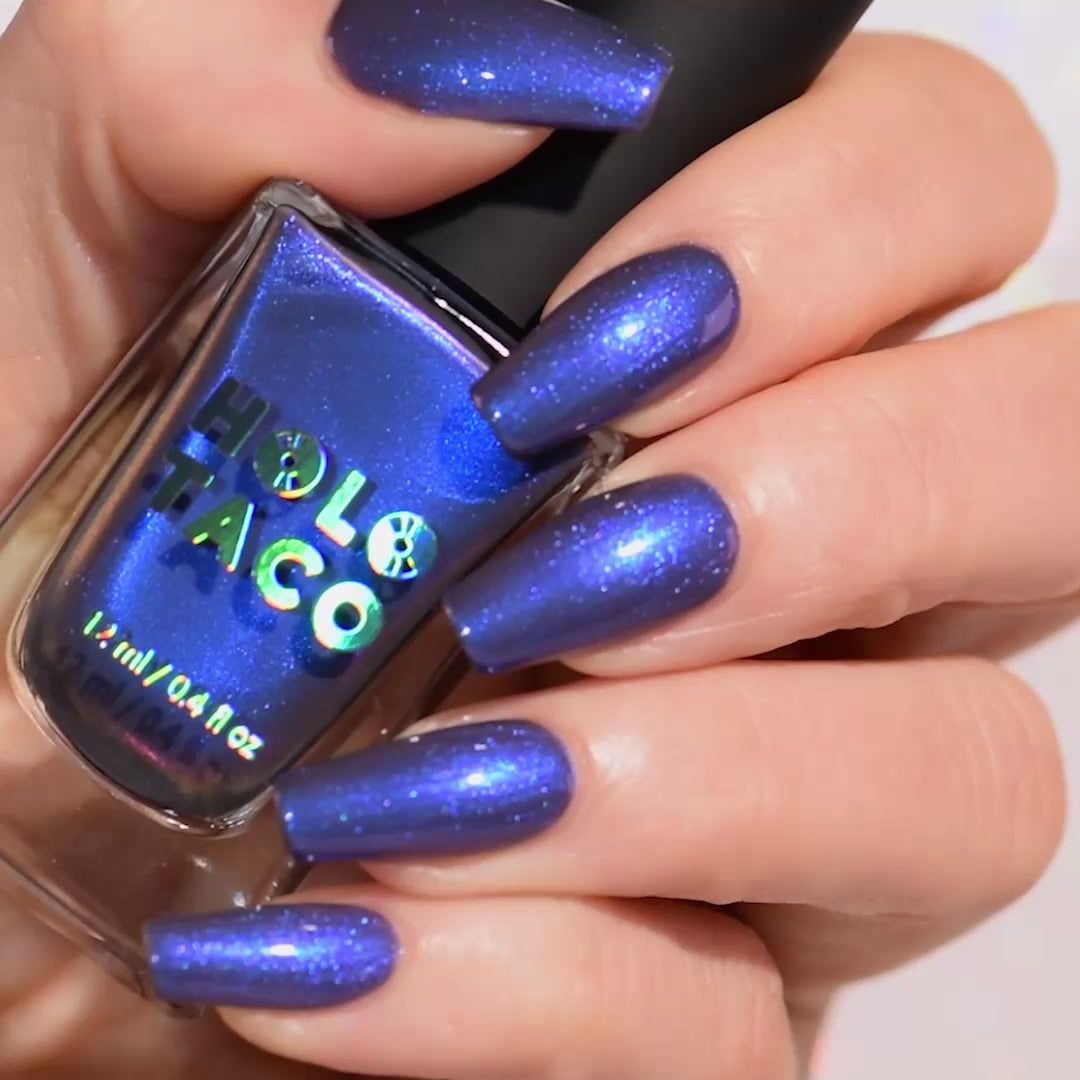 Dive deep into Shadow Lake. Take a moment for introspection as you sink into the cool and comforting darkness of this striking deep grey-blue shade. Watch its piercing blue iridescent micro-shimmer surface in a couple coats like a deep glow emanating from the bottom of a moonlit lake. Now to ask yourself: “how deep is your glow?”