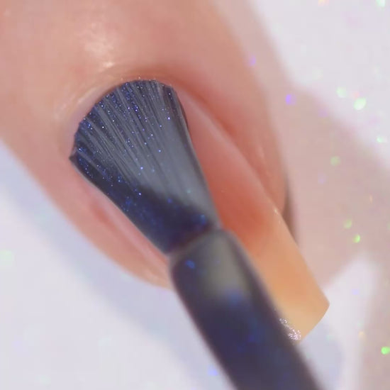- Deep grey-blue jelly base with iridescent blue micro-shimmer