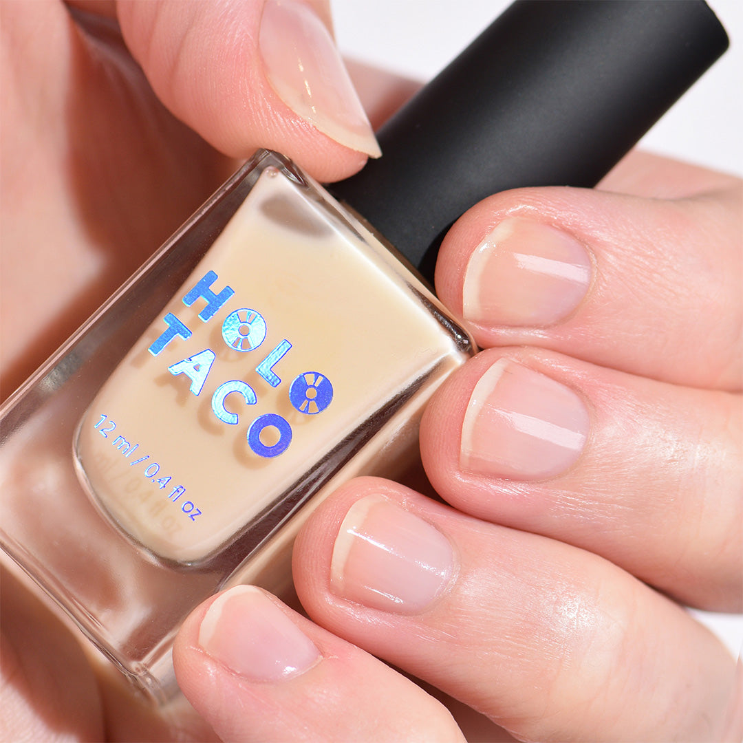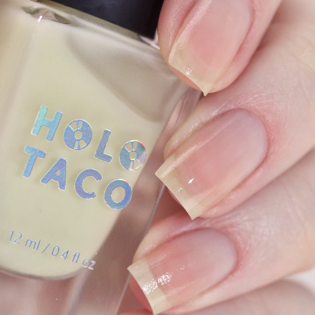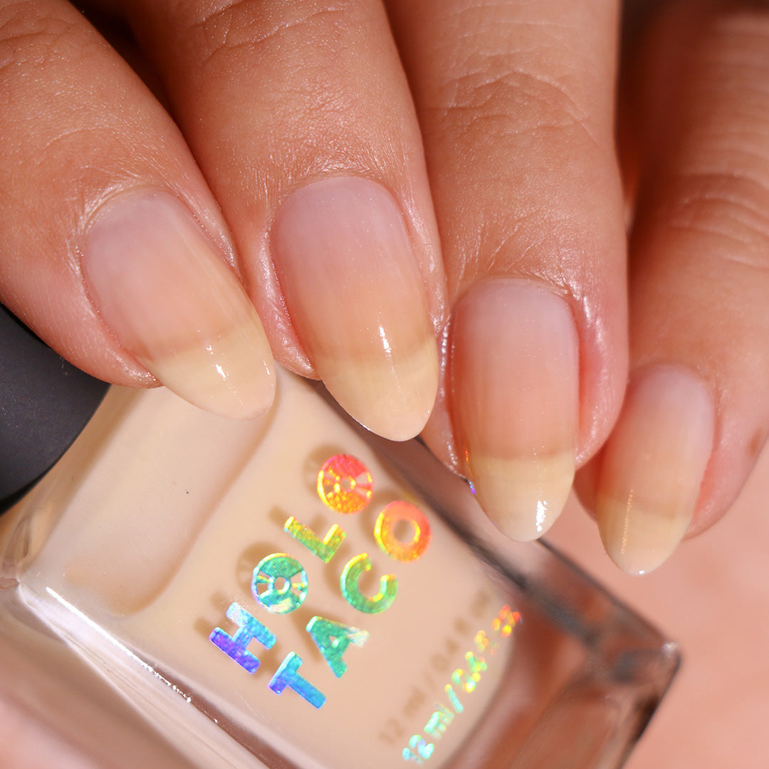 I love this! Not just as a base coat to go under other polishes! When I’m in a rush and can’t do a full mani before work but still want my nails protected and not *****, I go straight to this and a glossy taco! It’s amazing and I love using just this and one of the sparkly tacos, too! It’s a nail saver! Quality Holo Taco product as always!