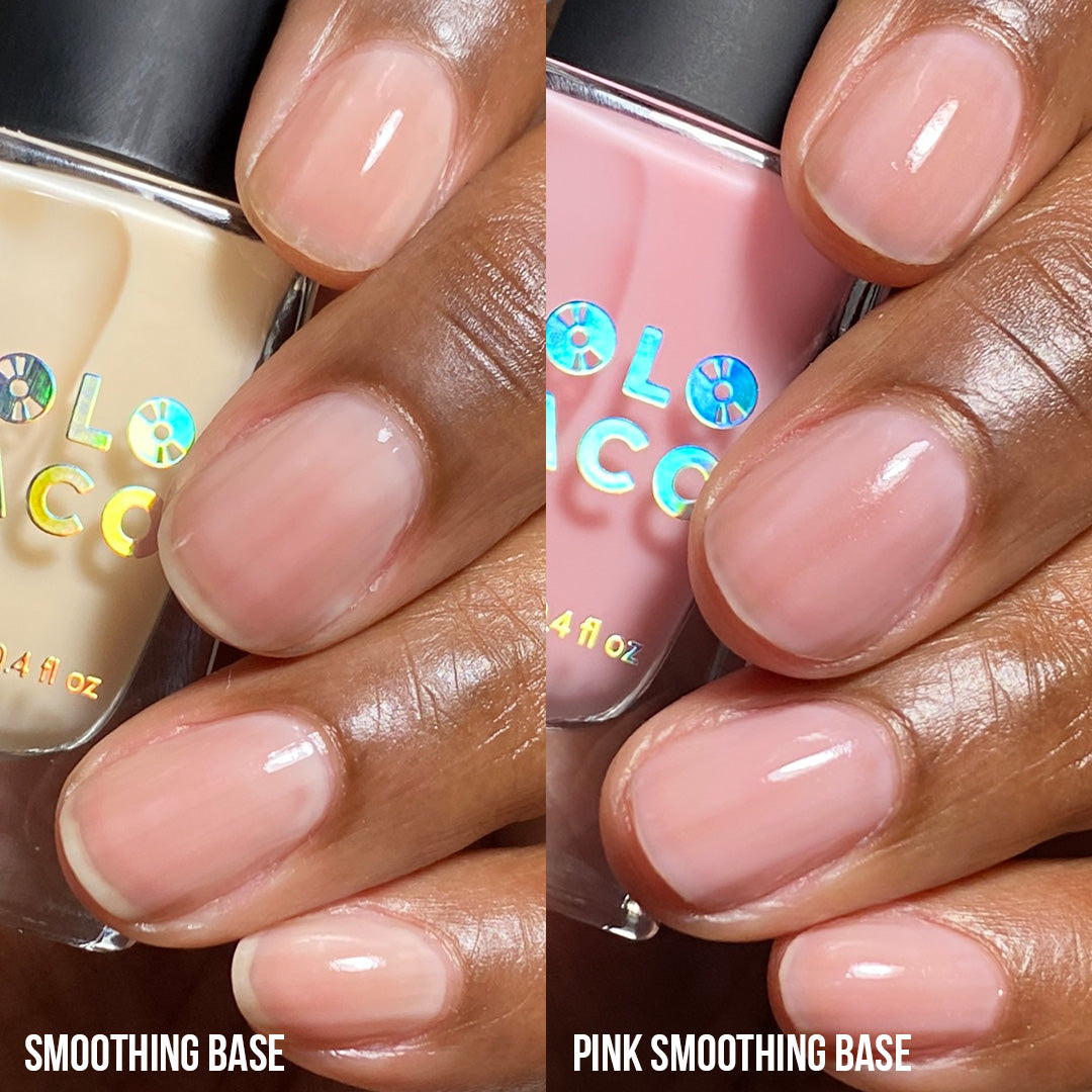 I bought this initially because I don't have smooth nails and hadn't tried a smoothing type base previously. I've noticed a much smoother finish and light line across my nails when using this as my base. But I ran out of time recently when doing my nails and had only applied 2 coats of this base. I intended to get back to finish them with polish etc later that day. However I realized how nice they looked with just this base on them. Like a subtle, classy french nail. And I absolutely love using just this on my nails now. Back to buy another bottle and try the new pink version.