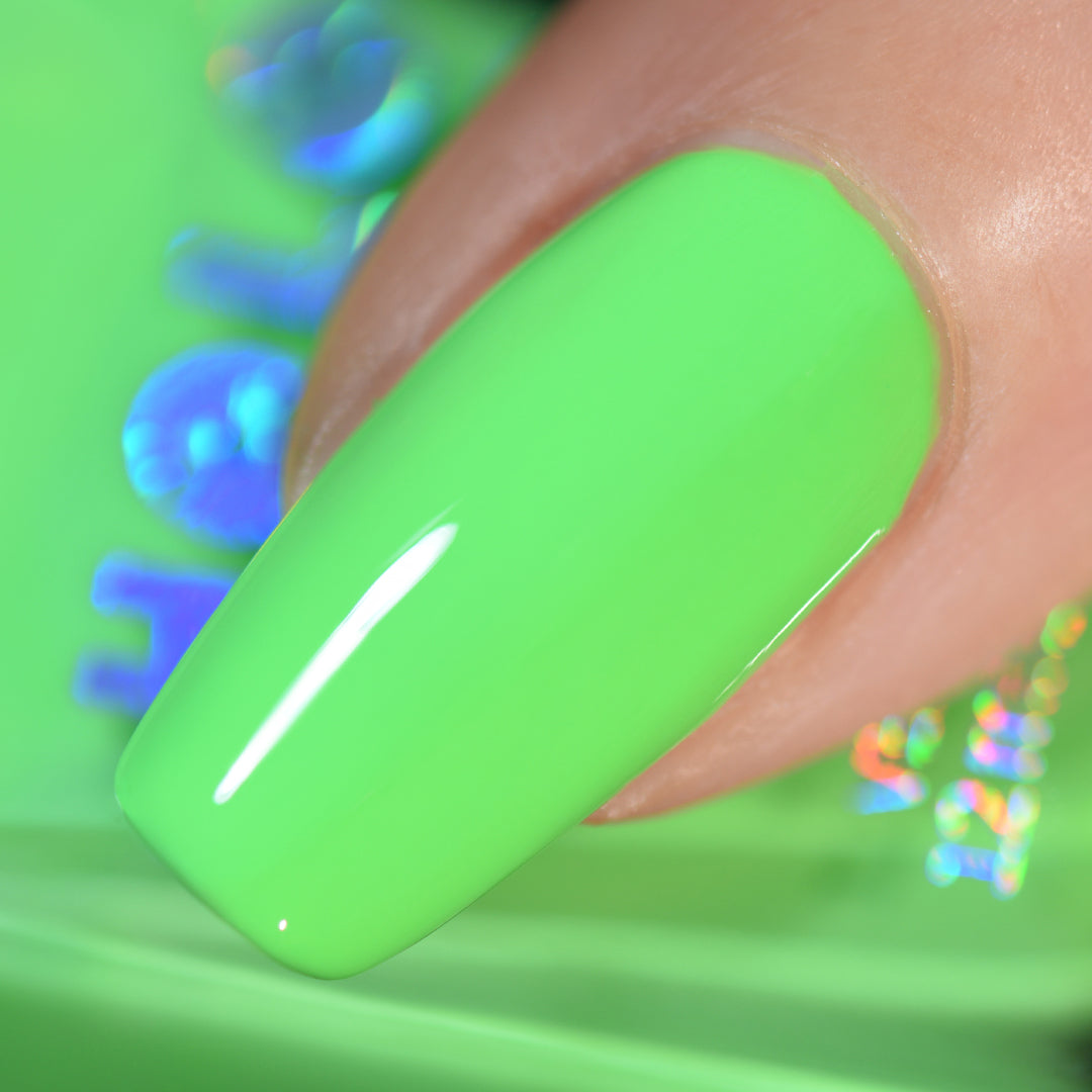 Bright plasma green crelly formula (aka opacity lands in between a crème and a jelly)
