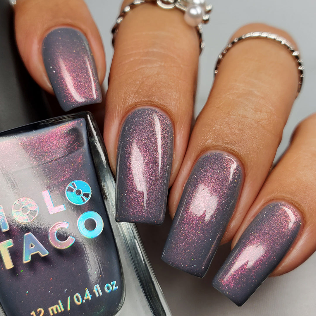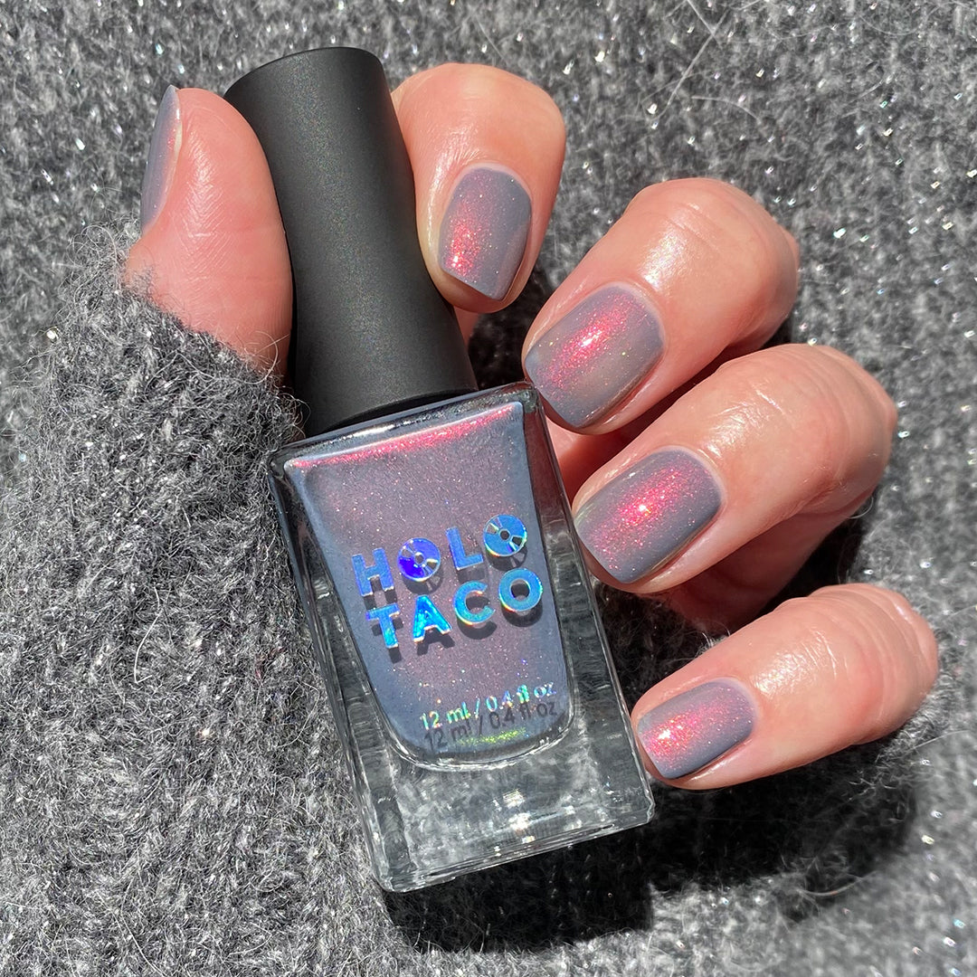 - Note: Holographic nail polish shows best under direct sunlight, halogen bulbs, or just your phone camera flash!