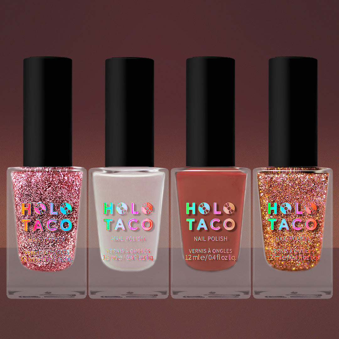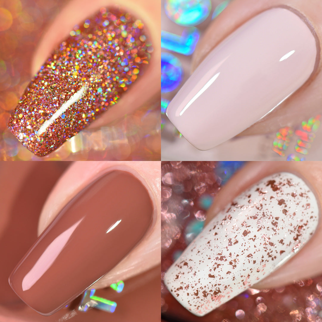 Set includes 4 polishes: Rose Gold Flake Taco, Rose Mary Kill, Ginger Snatched, Play Rosé